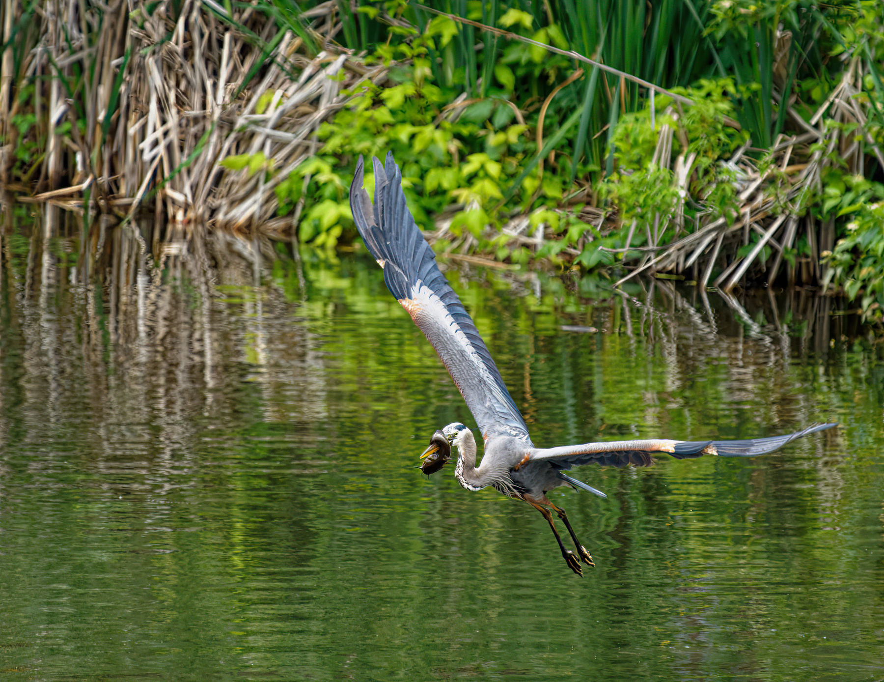 Some days you’re the GBH, some days you’re the catfish.Got more shots of Alfred yesterday, as he returned to nearly the same spot. This time he caught a fairly big catfish and decided to fly off with his prize to somewhere else. Yep, the catfish was curled around Alfred's beak --strange to see!