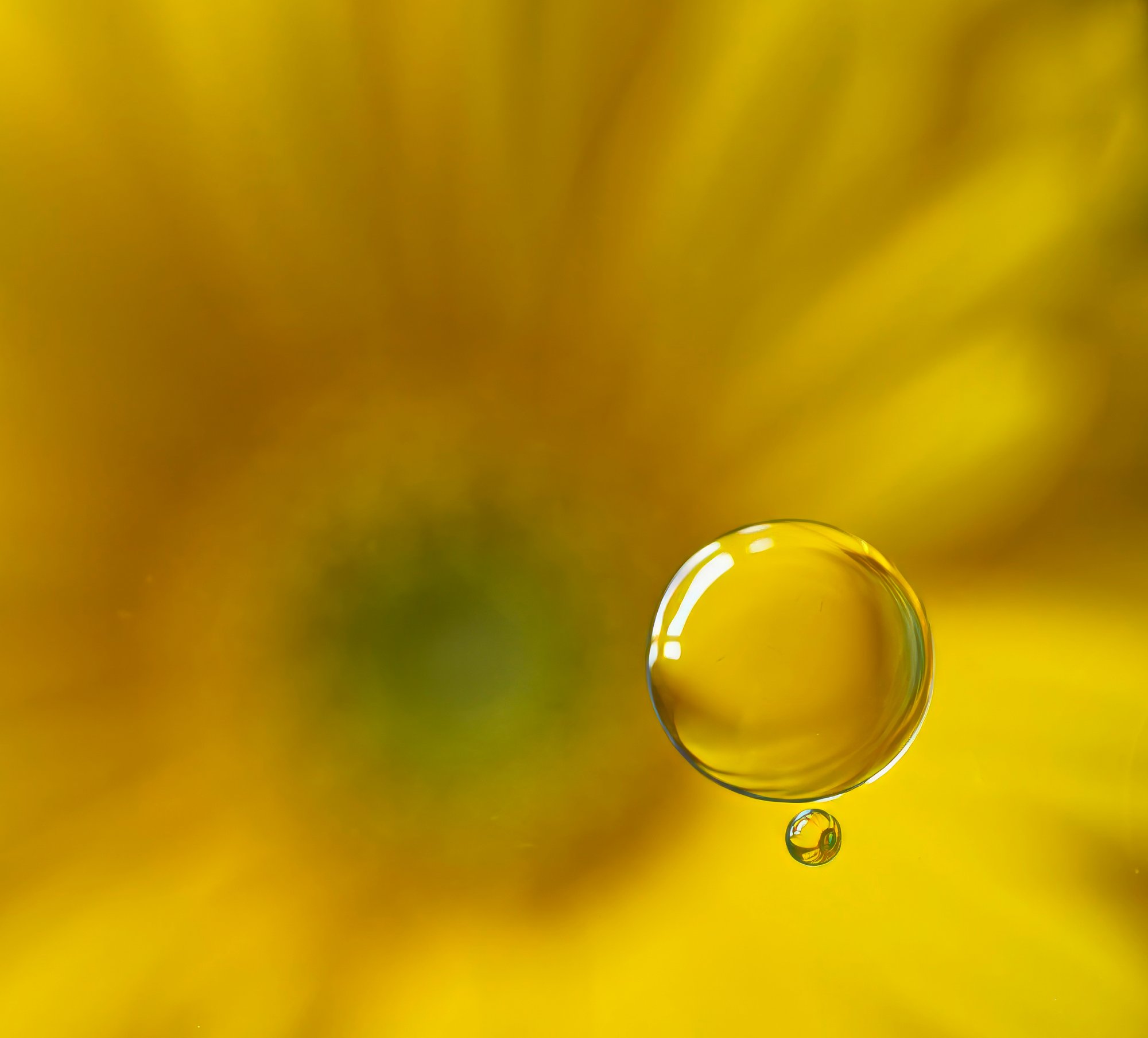 After buying the Rain-X (the glycerine wasn't quite doing what I was hoping to achieve with it), yesterday afternoon I finally got around to trying again, and this time shot in the living room near my sliding glass door with natural light coming in, and chose an actual flower, a yellow Gerbera Daisy, to use as the subject / background. Rather than supporting the sheet of glass with kitchen glasses, this time I used a waste can, put the flower (in a tall narrow vase) in it, then put the sheet of glass over the top of the waste can. That worked, more or less..... However, next time I'll try yet another strategy for the supports, especially if I go with using the iPhone or iPad and shooting in the dark again.