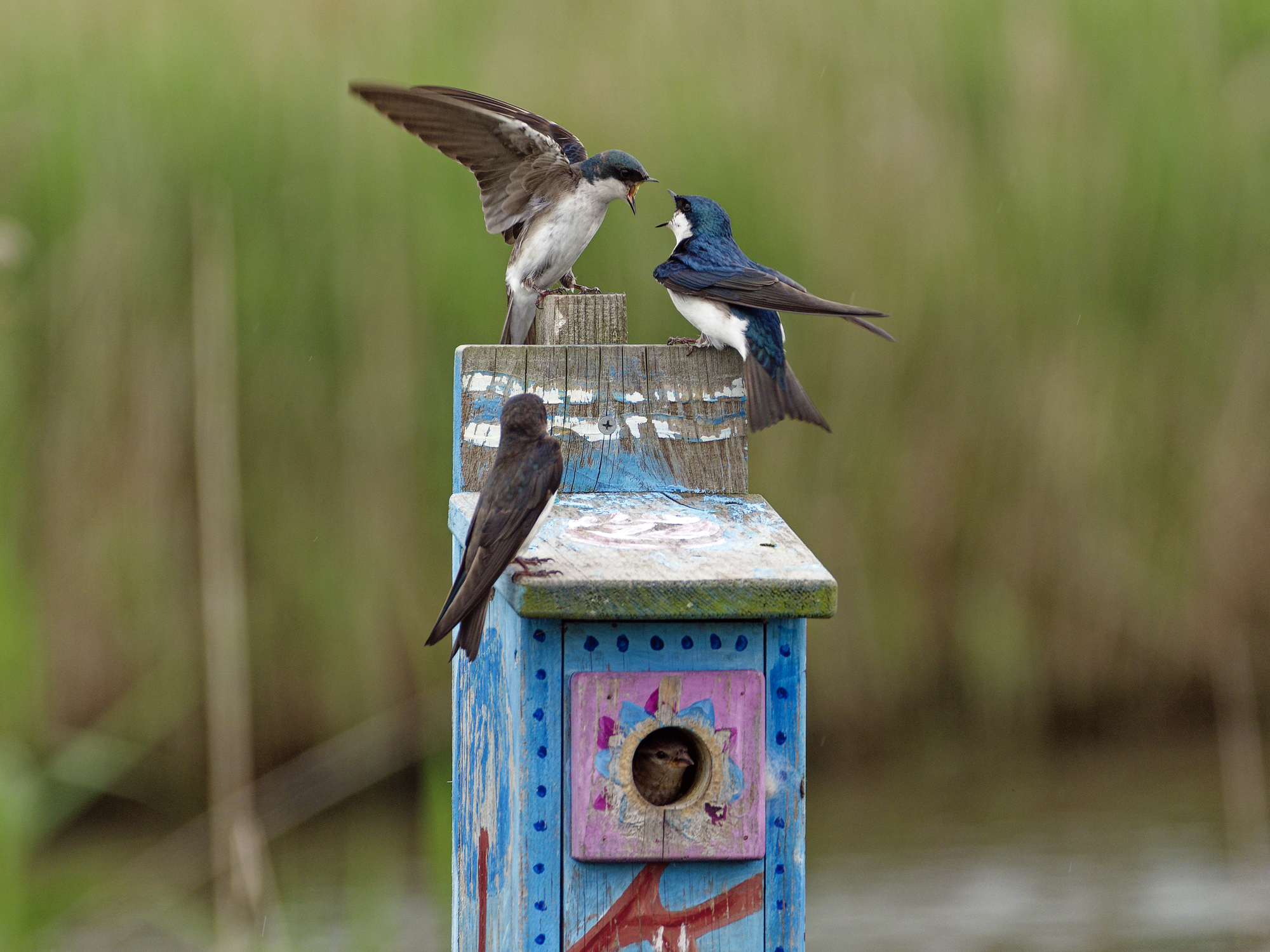 The bird inside almost looks like she's saying "there goes the neighborhood!"