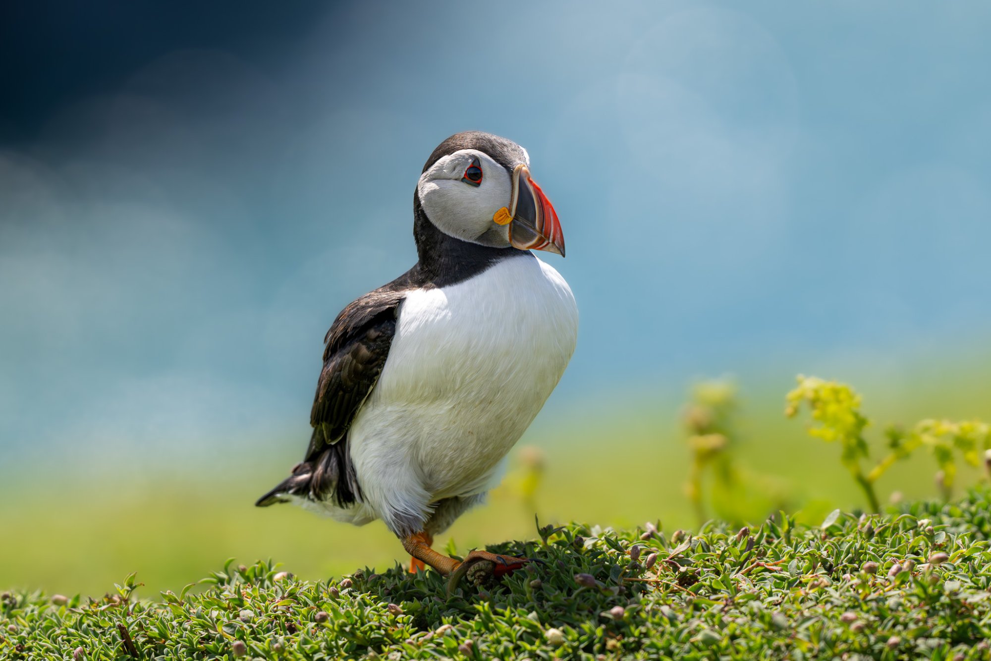 A curious puffin on Skomer island off the coast of South West Wales, yesterday