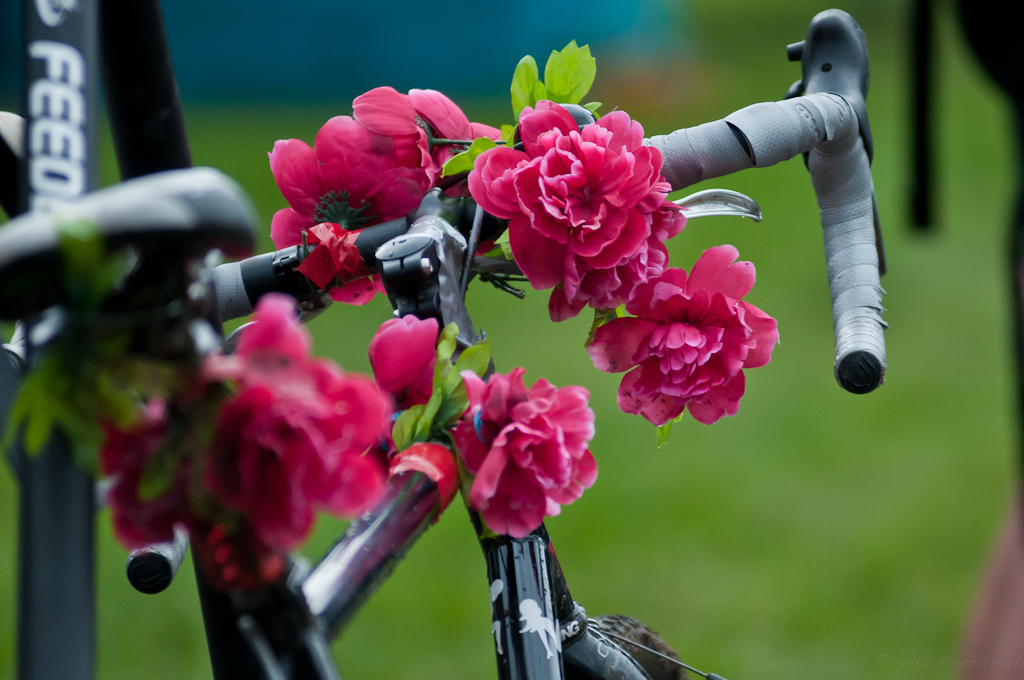 She was merely part of the "dominatrix" costume for a cyclocross bike rider wielding a pseudo-whip... who she helped 'pull' along the course. Even with the rowdy, hipster Portland bike culture crowd, the cheering turned to gasps and cries of disbelief as they passed by and everyone grasped the bondage connection.