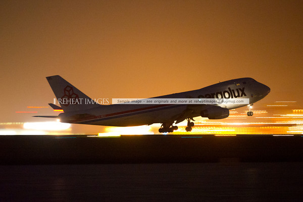 Here is photo I took last night. This freight B747 is almost never leaving at scheduled time - so the only time to photograph it leaving is at night, meaning a tricky high speed panning shot with the plane doing about 180kts and rotating: