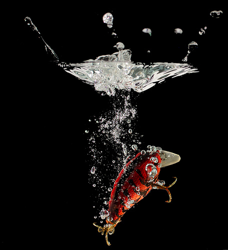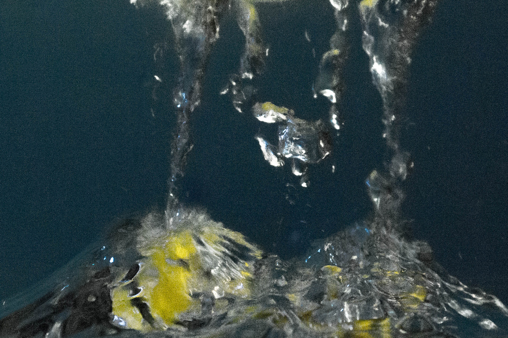 I can understand why you would like this type of shot - water with bubbles and the reflections can very cool. I would suggest that you add more light, increase your shutter speed, maybe increase your depth of field a bit, nail that focus and most importantly...keep trying.