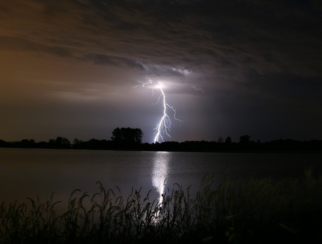 Lightning over wetlands in Oregon. As you may guess, many long exposures were attempted before I was able to get this shot, luck played a huge part.