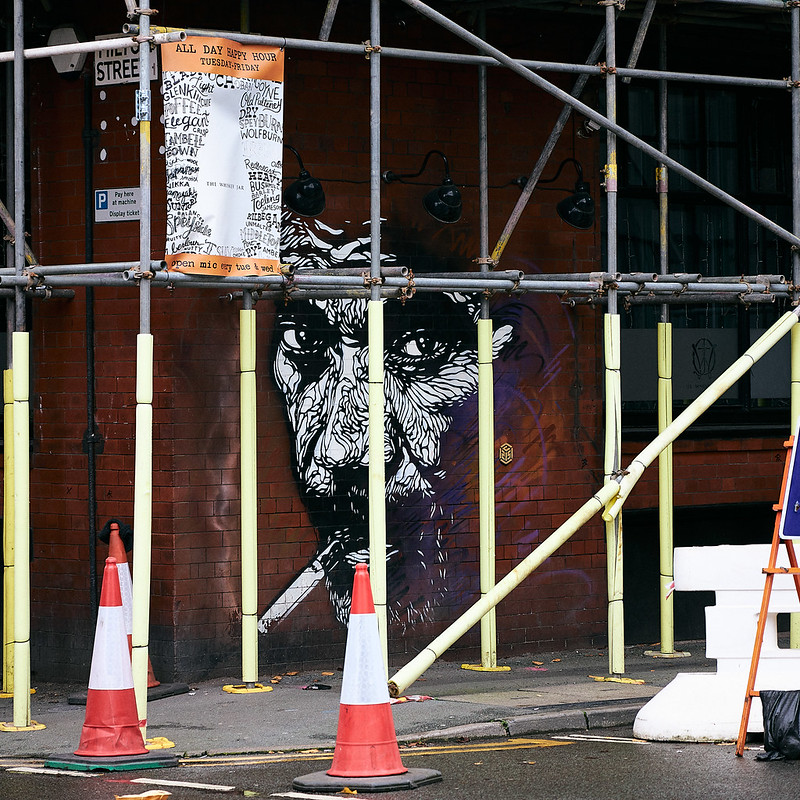 A scene I have taken on many occasions. Nicely reflected.Postings for November are too cheerful by far. Let me cure that. Some views of Manchester. Yes, it had stopped raining for a bit. A lot of the industrial buildings have been flattened or turned into trendy apartments but some scenes that capture the sprit of Cottonopolis still survive.