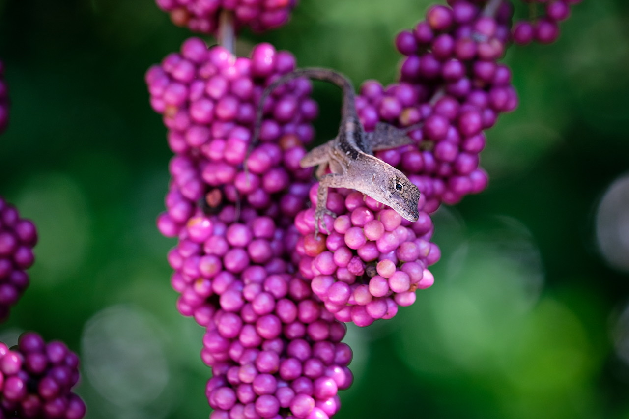 I almost missed this little brown anole lizard while trying to photograph other things in the garden.