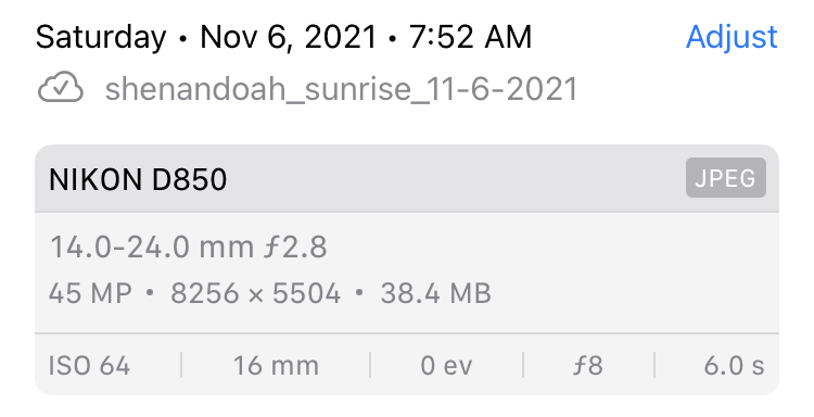 The D850 is a lovely Camera. My wife shoots with a 750 and has invested all her money in glass, but she’s antsy to get the 850.I did take a couple of bracketed exposures, but the one I posted was a single exposure.