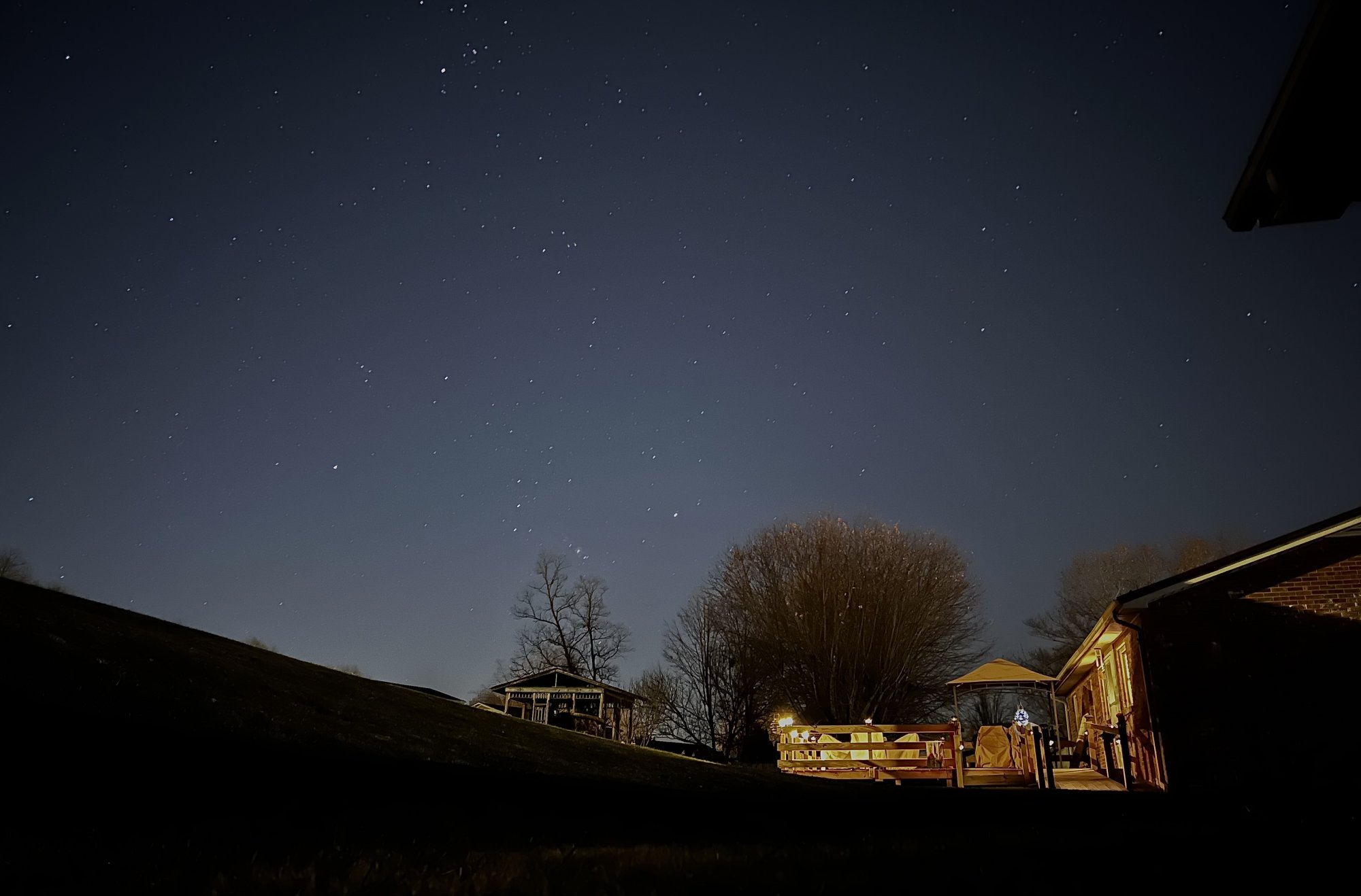 It’s actually not that new a thing for phones. When I had an LG G4 (about 5 years ago), the default camera app was able to do 30s exposures. I still have fond memories of that old phone, rear buttons and all.Went out to my back yard and happened to look up. It was too tempting not to take a picture my phone. Really love the ability to keep aperture open for 30 seconds (manually) now in the native Camera app. It makes astrophotography somewhat doable! View attachment 1916929
