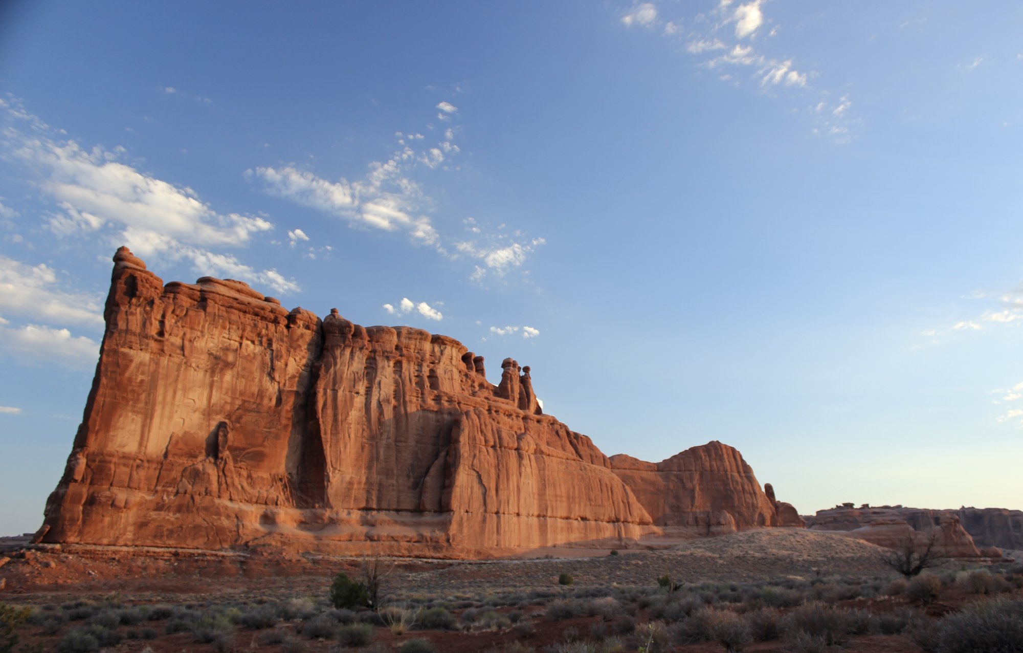 This 300-foot-tall sandstone fin stands facing The Organ, a 700-foot-tall tower, across a flat space about 500 meters across. Just these two mammoth formations thrusting up out of the flat ground (unfortunately I feel that deprives this photo of scale).