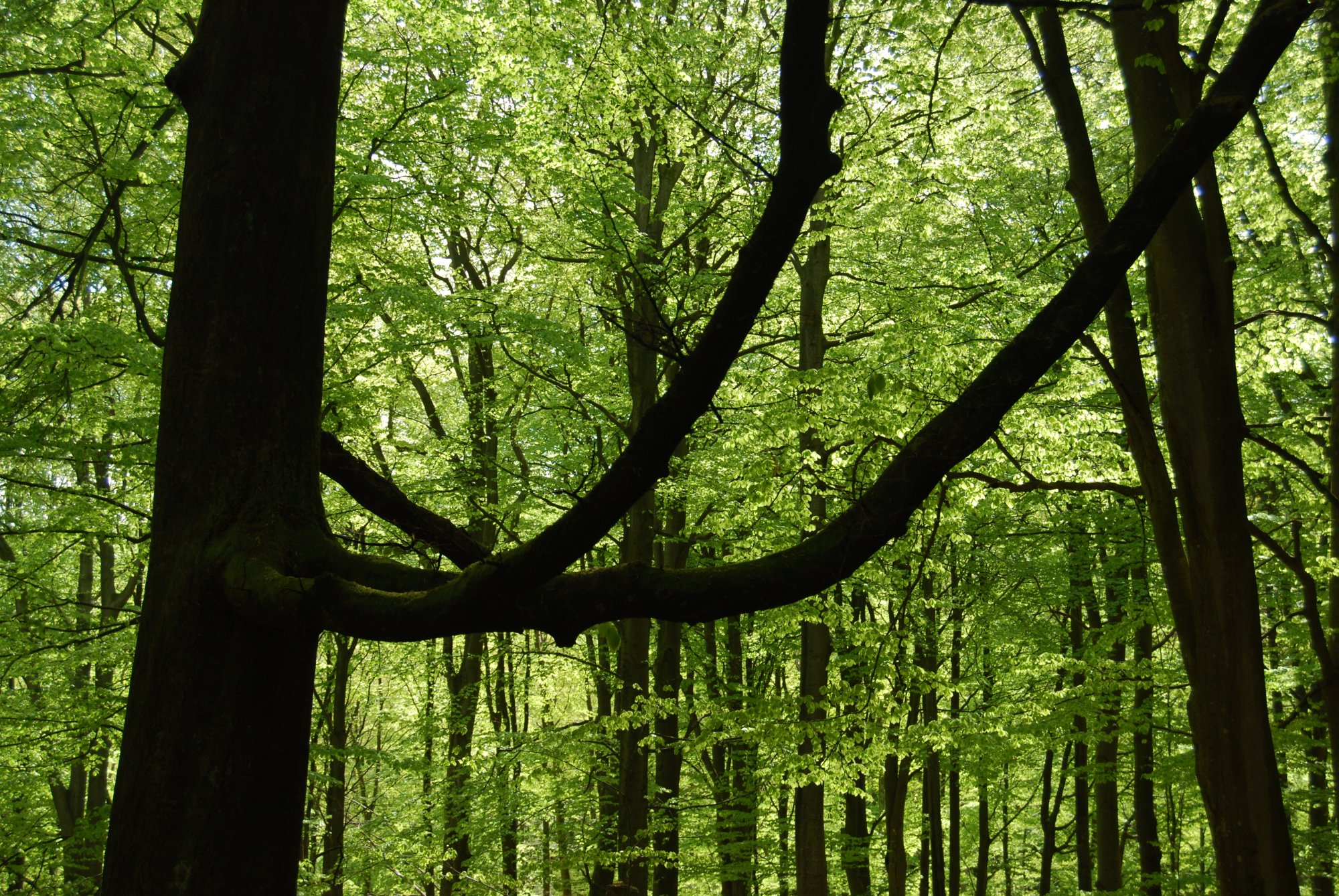 I love the contrast between the dark tree trunk and the light green colors of the leaves. The best time of the year to enjoy this is in the spring.
