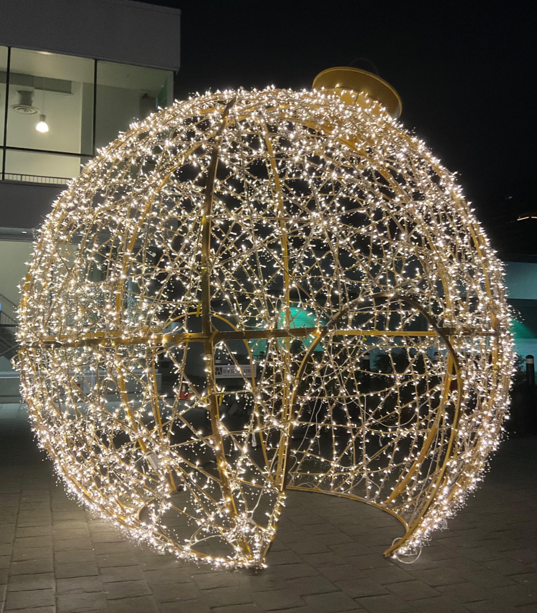Awesome! thank its nice.. holiday decoration - lighted "Chrstmas ornament" - located outside in a plaza at an entrance to the local Mall - open for one to use for photo opportunities.