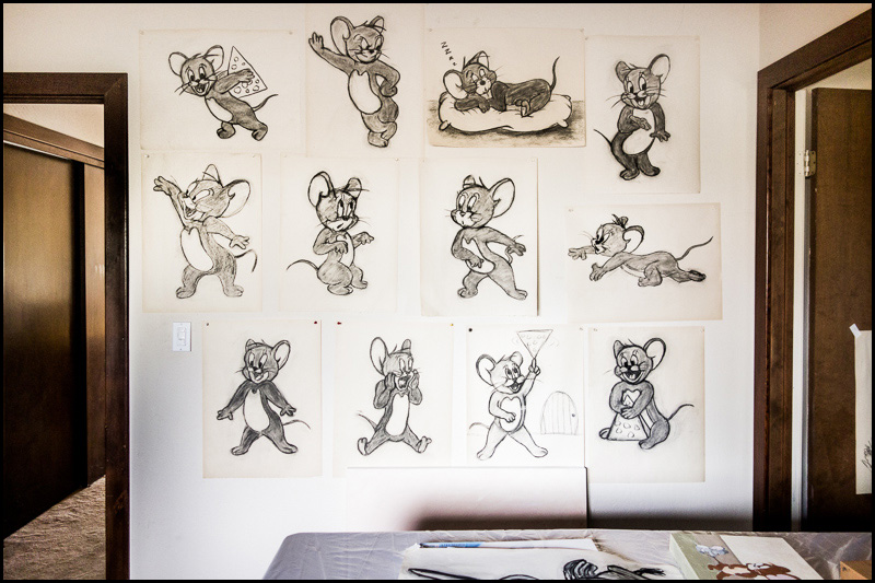 Here are some of her charcoal Jerry drawings from the old film cartoon series Tom and Jerry.