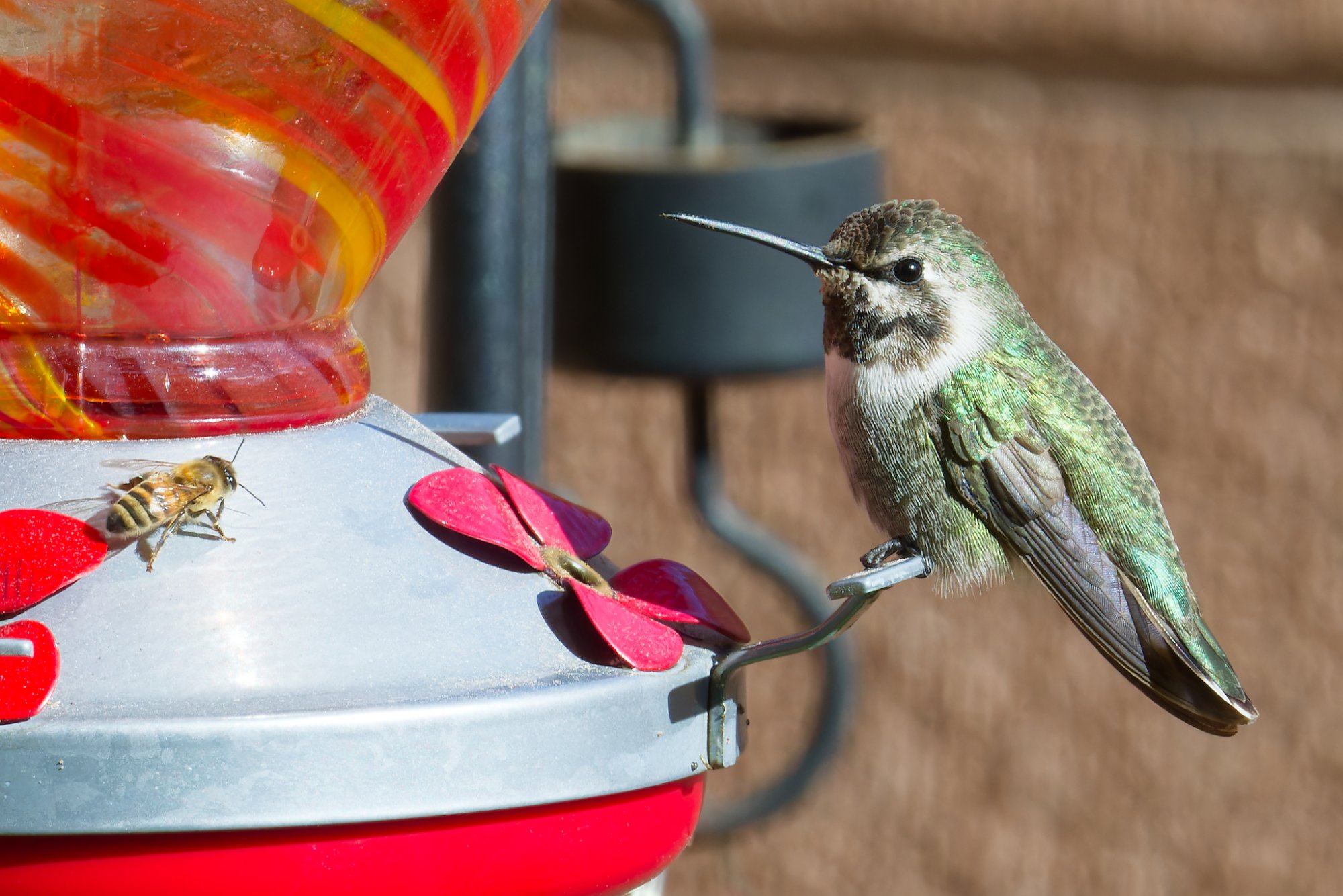 The bee. It chased off the hummingbird much like the local hummingbirds chase off the pigeons if they get too close to the feeders. Lesson here: don't mess with the little guy who thinks they are bigger.Cute one! 😄