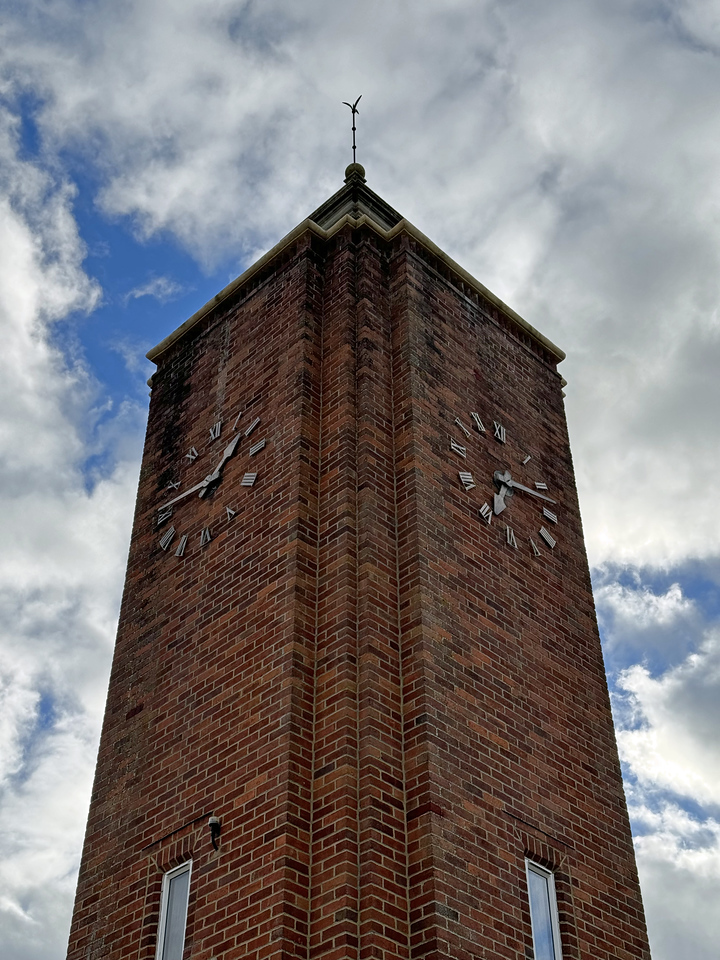 It is traditional to have one fake clock-face on tower clocks - for some reason such as "to confuse the devil".What time did you take this? There seems to be a difference of opinion!