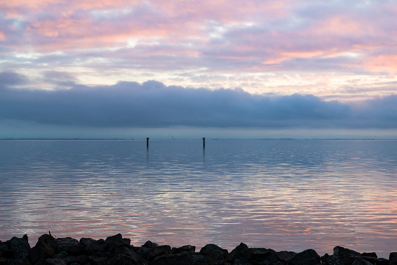 While they fiddled, I unwrapped my travel tripod and mounted my iPhone and took about a hundred photos while the sun set. Some are just meh. The tide was going out and there wasn't enough wave action to get good swirls. This came out ok.