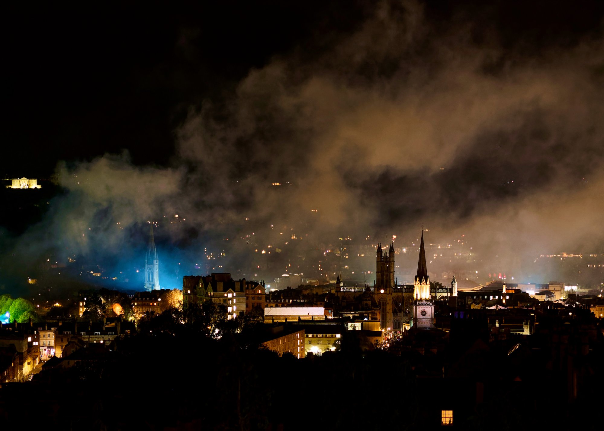 Guy Fawkes day I presume, my thoughts now would get me banned so...After all the fireworks and bonfires, the smoke slowly drifts over the city centre…