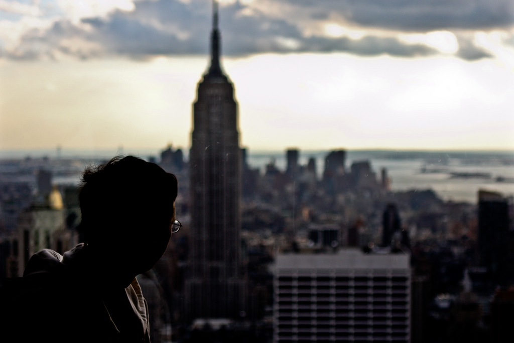 That's the thing, the composition was tough, a, the subject didn't know I was behind him - had to react quickly, b, very slim window line to properly line up the tower and head how I would have liked, and c, tough reflections...
