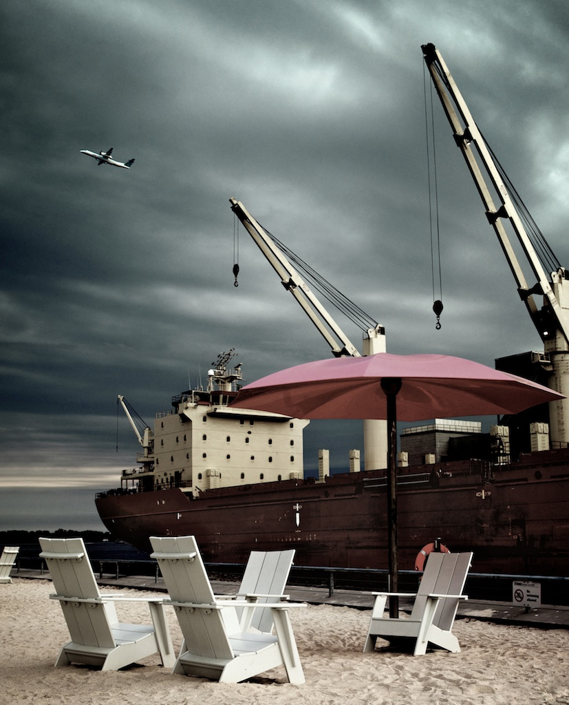 The composition would have been a bit nicer (less cluttered) if the umbrella wasn't there I think... but it's one of the shots where you don't really have time to frame it well... just notice the plane, lift and shoot!