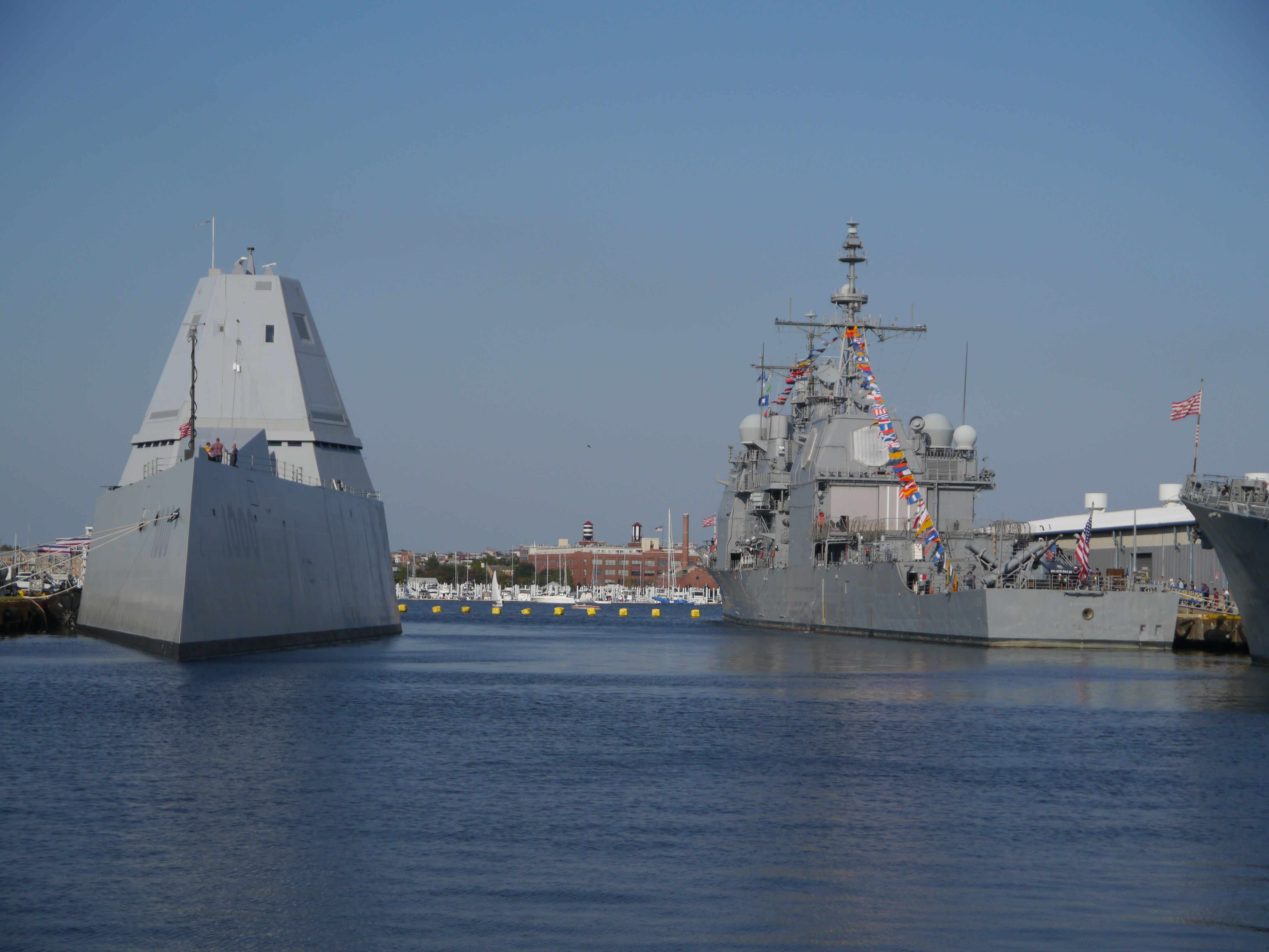 [doublepost=1476715535][/doublepost]I read that The Zumwalt can fire missiles at a distance of 62 miles. ImpressiveTo the right, the USS Leyte Gulf (CG-55), a Ticonderoga-class guided missile cruiser of the U.S. Navy commissioned on 26 September 1987. On the left, the USS Zumwalt (DDG-1000), a Zumwalt-class guided missile destroyer of the U.S. Navy commissioned yesterday in Baltimore. The Zumwalts stealthy properties gives it the radar cross-section of a fishing boat despite its size. After seeing these ships and touring the USS Jason Dunham (whose bow can be seen behind the Leyte Gulf) I came away thinking you truly do not want to mess with a naval warship.