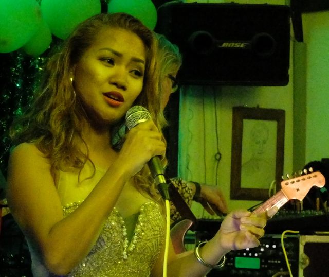 Filipino singer @ The Landlord's 70th, The Green Man, Phuket - Fujifilm X20; ISO 2500, f 2.5 @ 1/300 sec