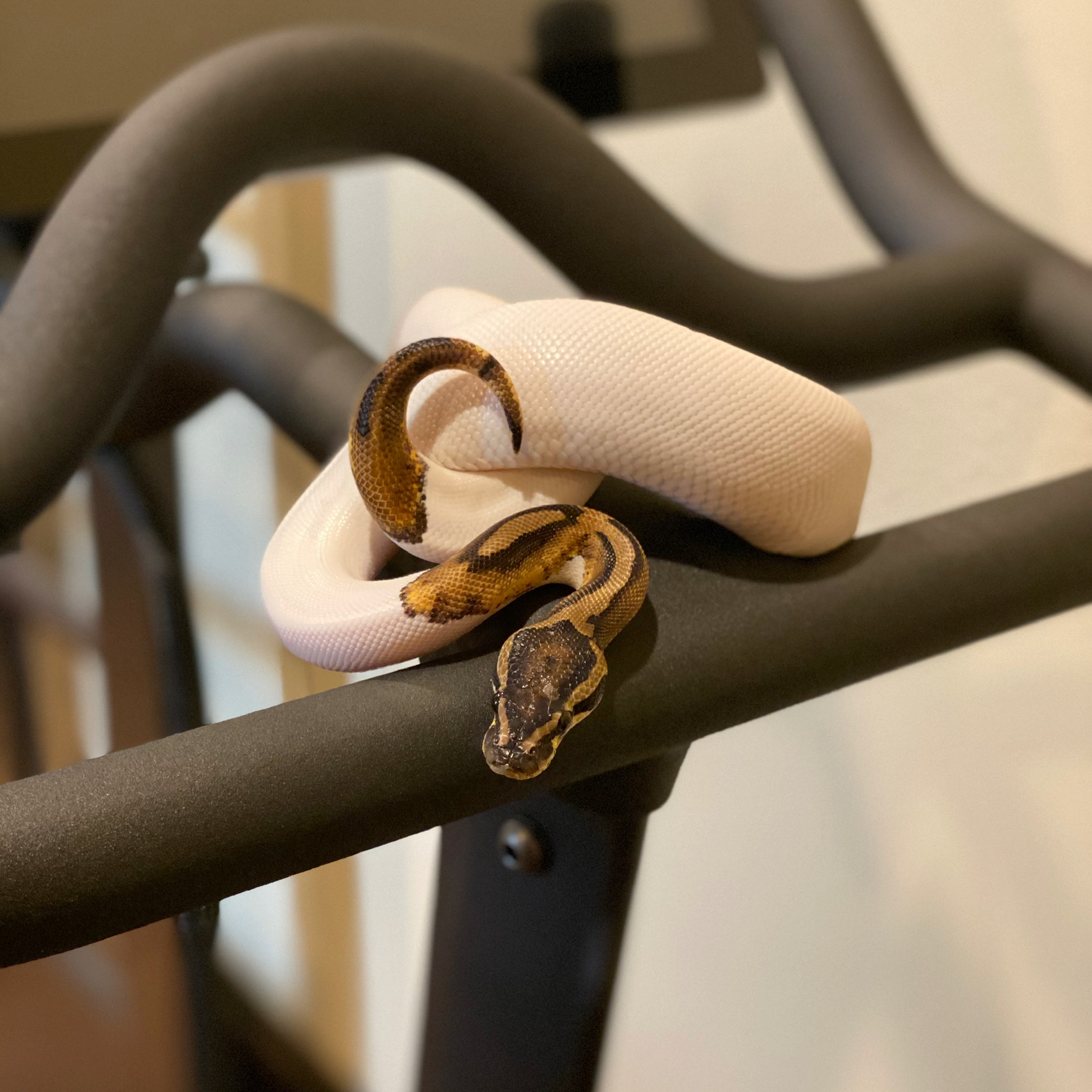 Those handlebars look too clean..... I hope the snake isn’t the only one riding the Peloton! 😉