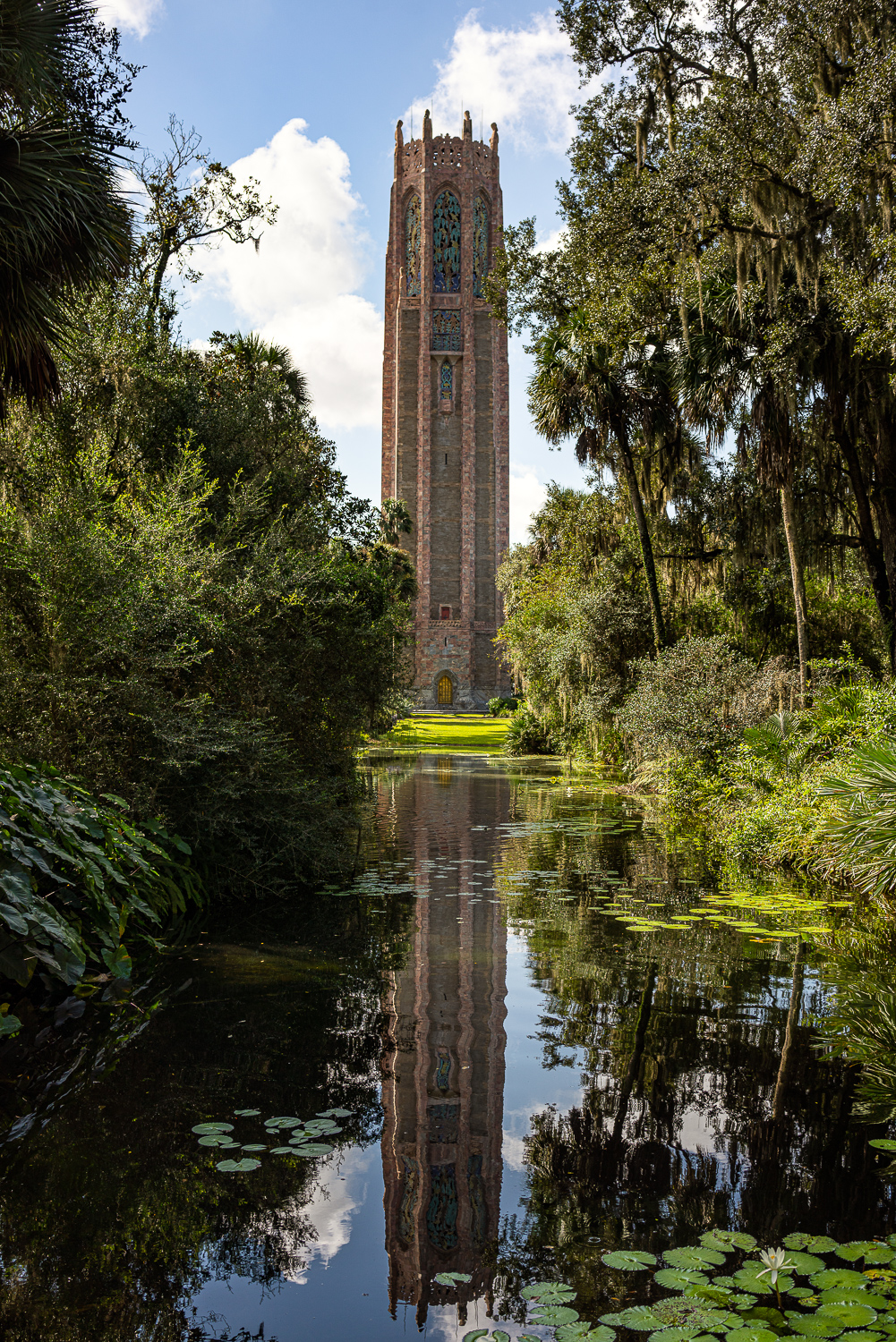 "The Carilion at Bok Tower rises 205 feet and contains 60 bronze bells that resonate throughout the garden. Edward Bok, a retired and very successful publisher, and Pulitzer Prize-winning author wintered with his family in the exclusive Mountain Lakes Estate at the base of the mountain. When able to purchase the top of the mountain, he commissioned landscape architect Frederic Law Olmstead, Jr and other skilled artisans of the day in the creation of the gardens and Singing Tower, dedicated in 1929."
