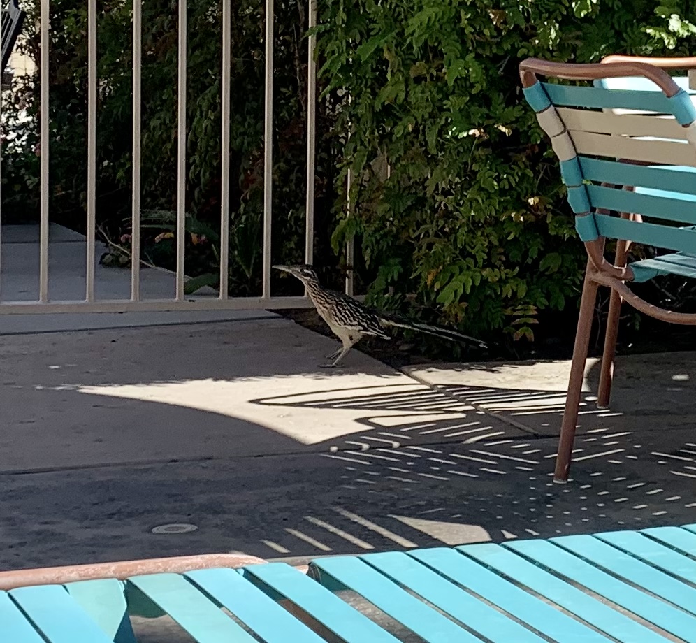 A roadrunner paid us a visit at the pool, trying to catch some of the butterflies that abound here.
