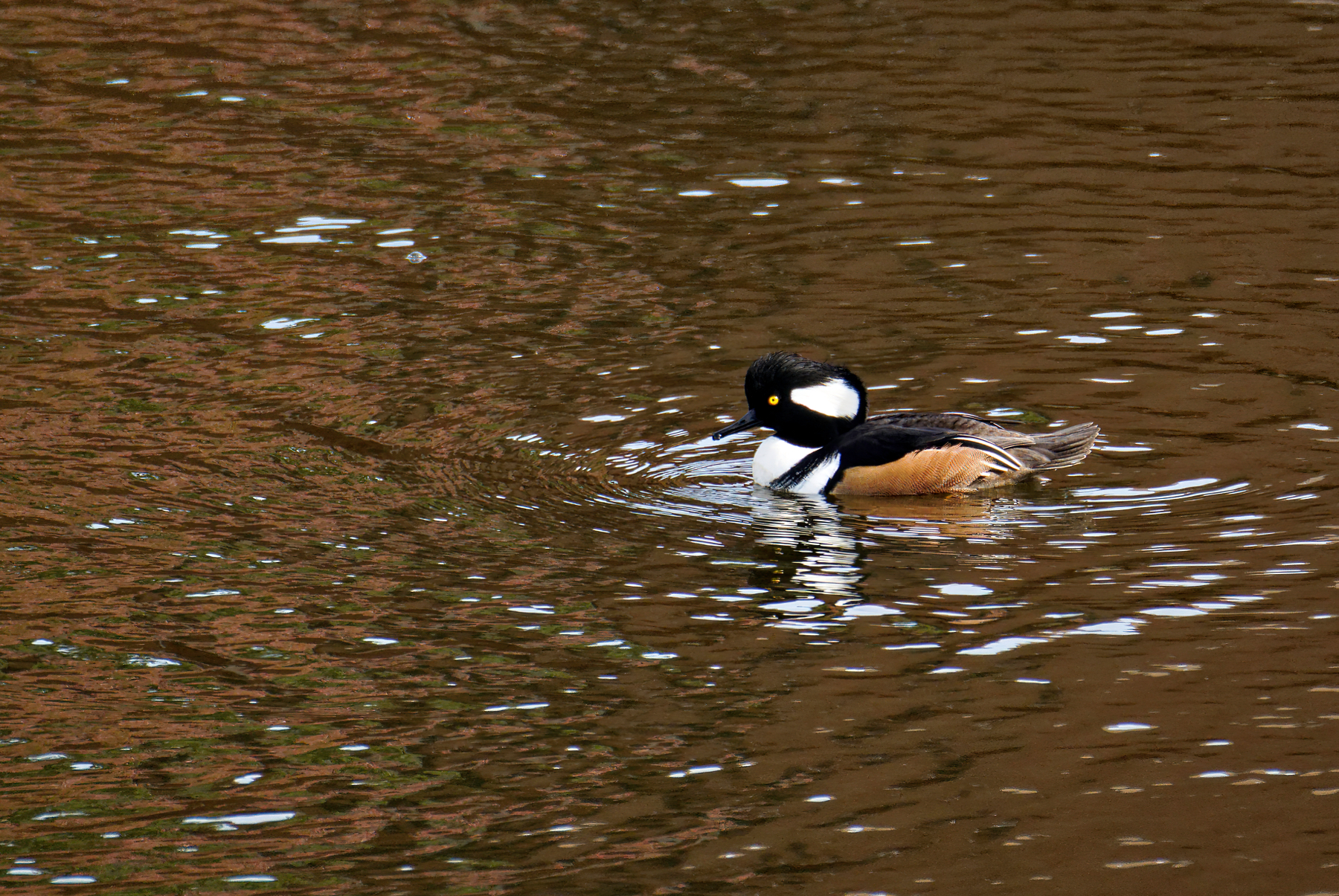 I like the matching colors with the water, all tones of brown /beige and a touch of black and white to underline the beauty of the duckFirst sighting of a Hooded Merganser on our lake this season! Hopefully more of them will join him soon, as it is odd to see just one on his own.