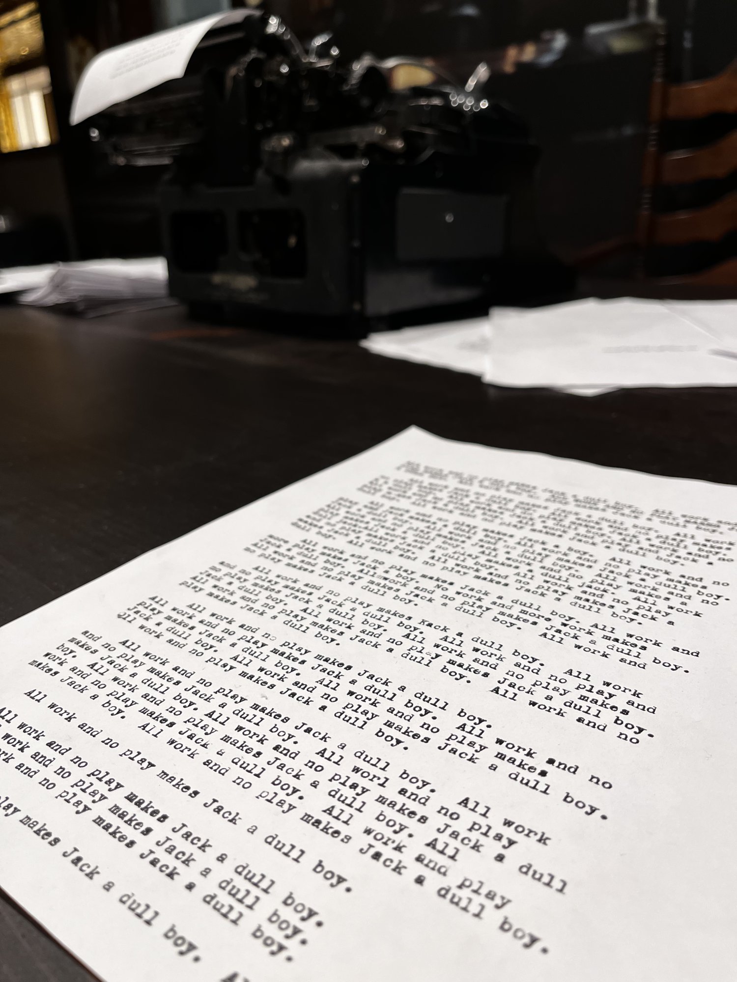 The Shining: there was a life-sized poster of the twin girls with a “Come and play with us” neon sign; the bar had been done up in gold and mirrors as a replica of the Overlook Hotel bar; and then there was this: