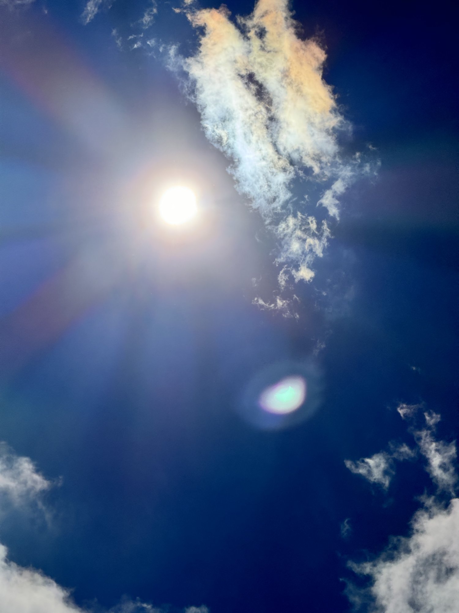 And you got some iridescent clouds.I tried to get a shot of the eclipse yesterday but didn’t come out the way I hoped. While you can’t really see the eclipse, I turned the exposure way down and ended up with this shot of the sun. No filter, edits, or anything.
