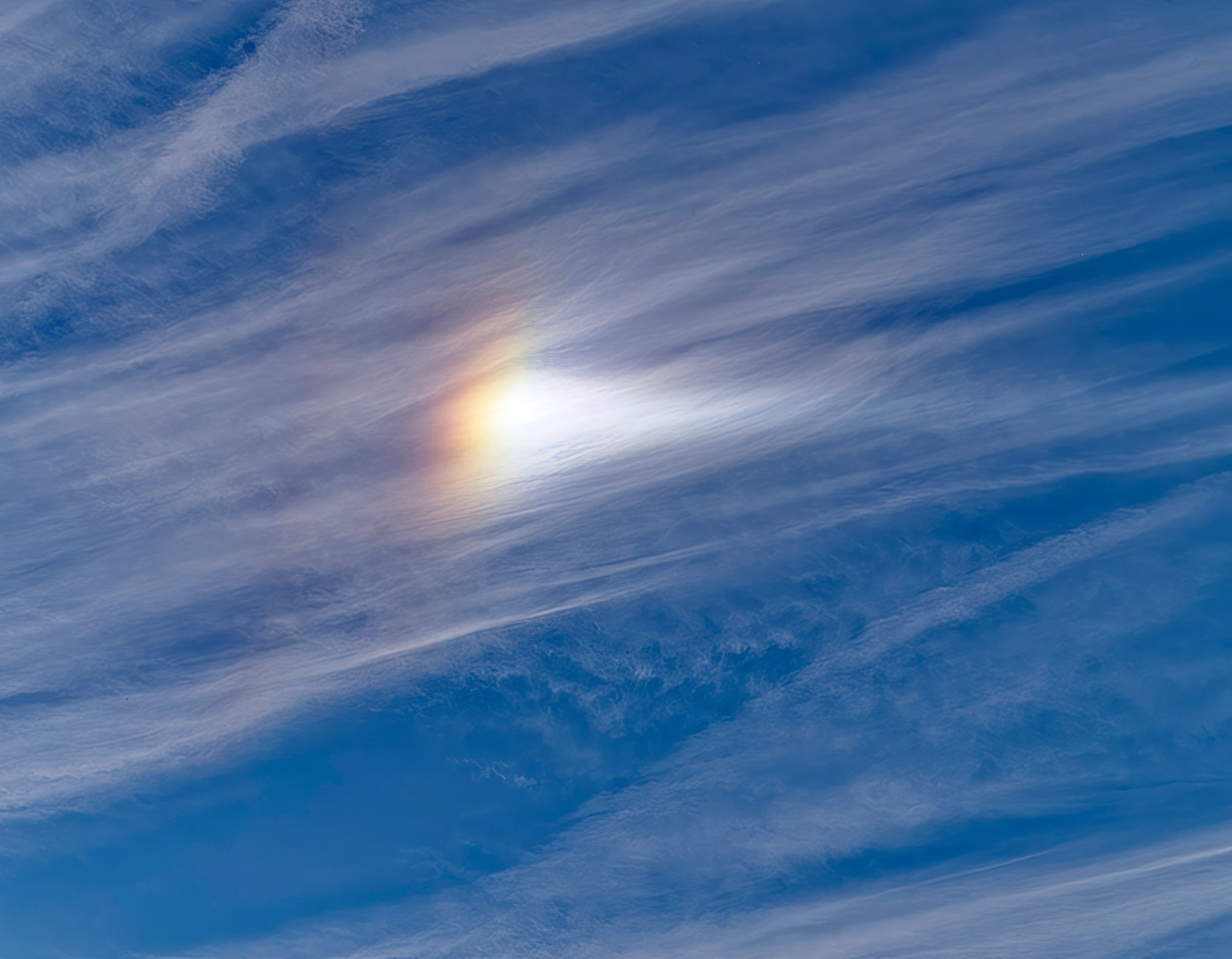My dad referred to these as a "sun dog."Something we don't see very often: Cloud Iridescence, where there is a small burst of color in the clouds.