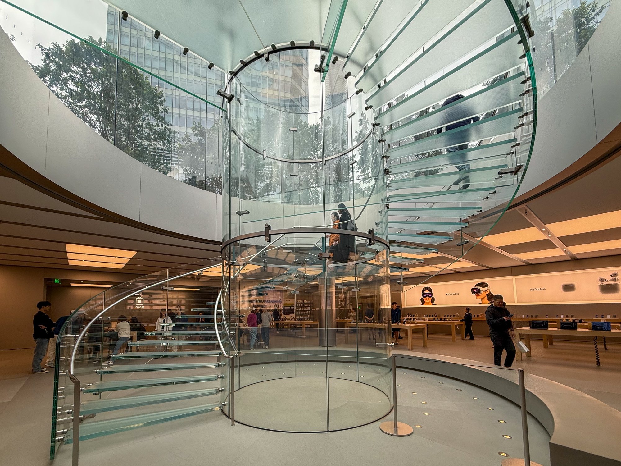 Inside the Apple Store. I had never been inside one of these glass-encased-entrance, below-ground-level stores. Very cool. Shanghai, China. Taken yesterday.