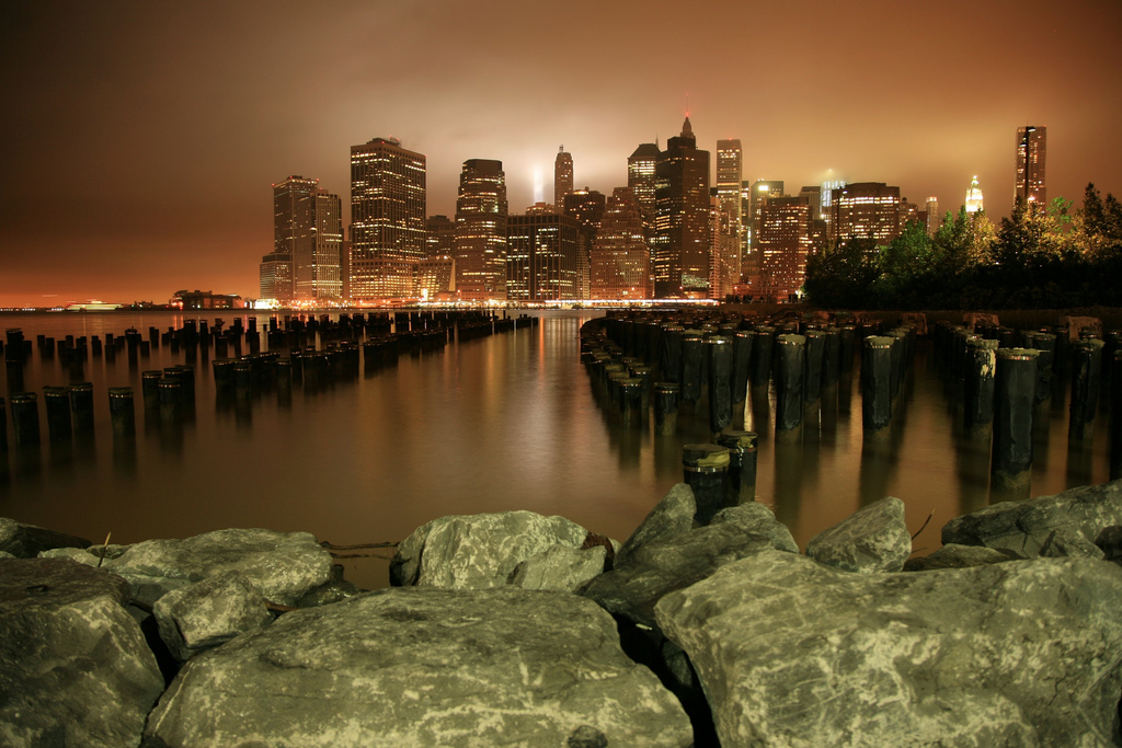 The trick to getting everything sharp is when using this lens on a tripod turn of the image stabilizer. Using the "is" while on a tripod is not recommended. Also, I utilized the park lights that were behind me to brighten up the rocks.