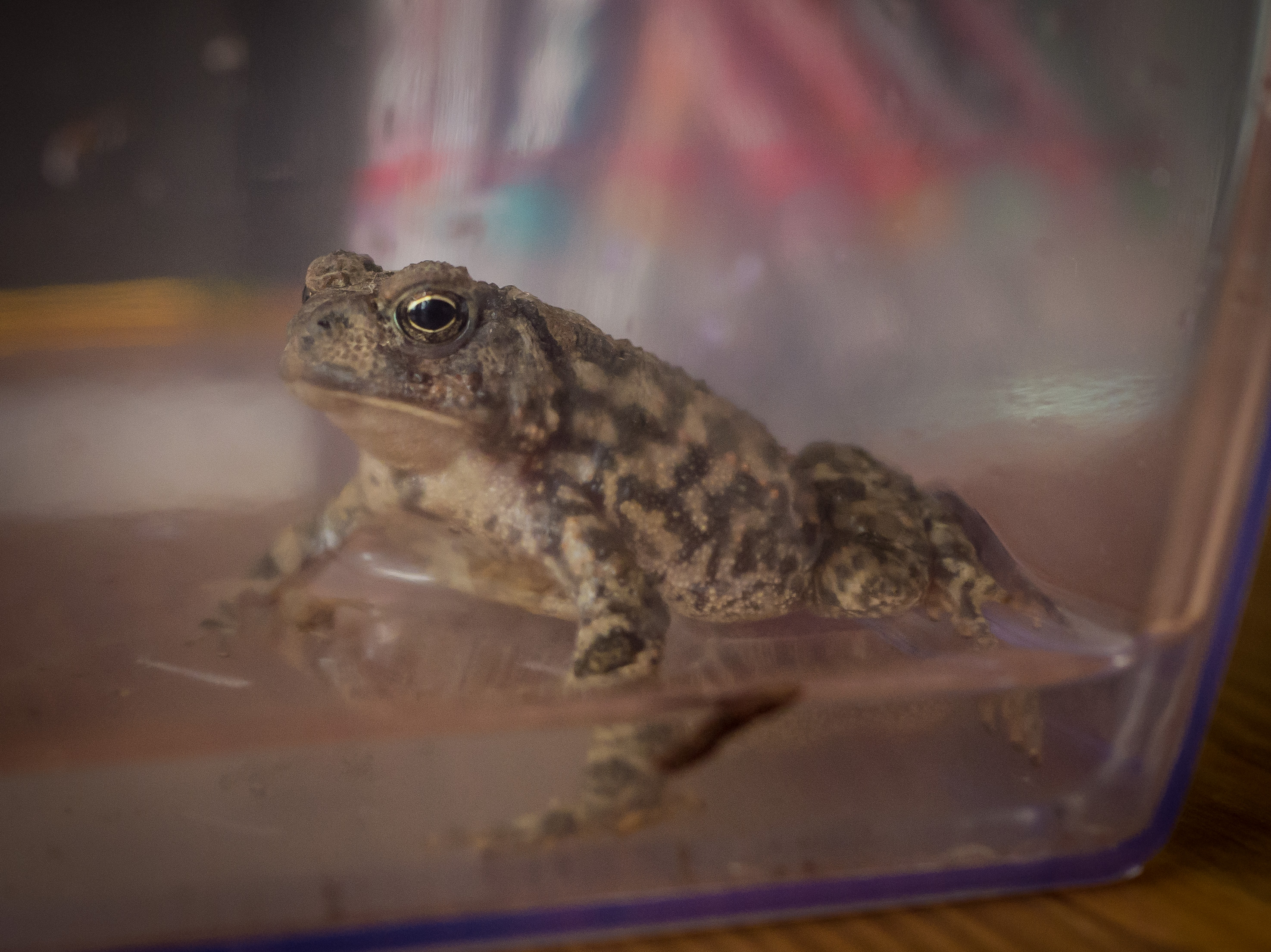 This poor fella got stuck between our screen and window. Darmok pulled him to safety, then let his kids study before releasing.