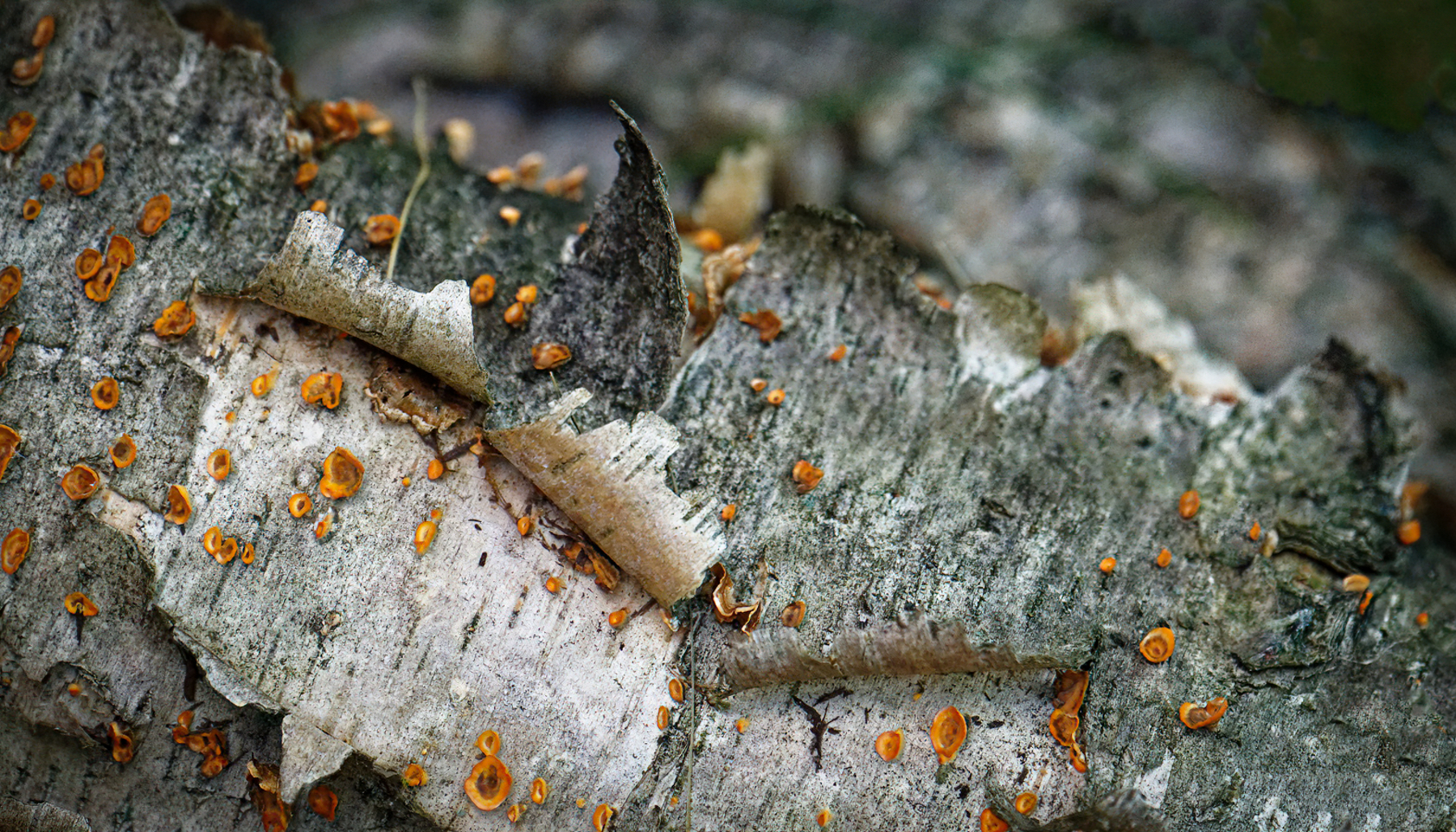 It looks like a painting: beautiful!A small pile of logs had been left to nature..... This one seemed rather photogenic. I have no idea what those little orange thingies are but they caught my eye!