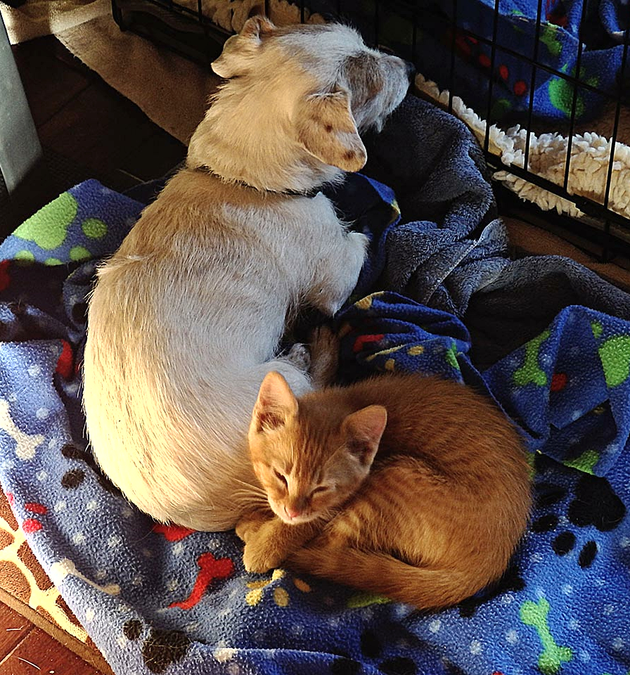 Stretching one's way of thinking is a stretch. Yet worth the effort.Milo kitten's first night in new home ; getting comfort from a barely tolerant Pixie.