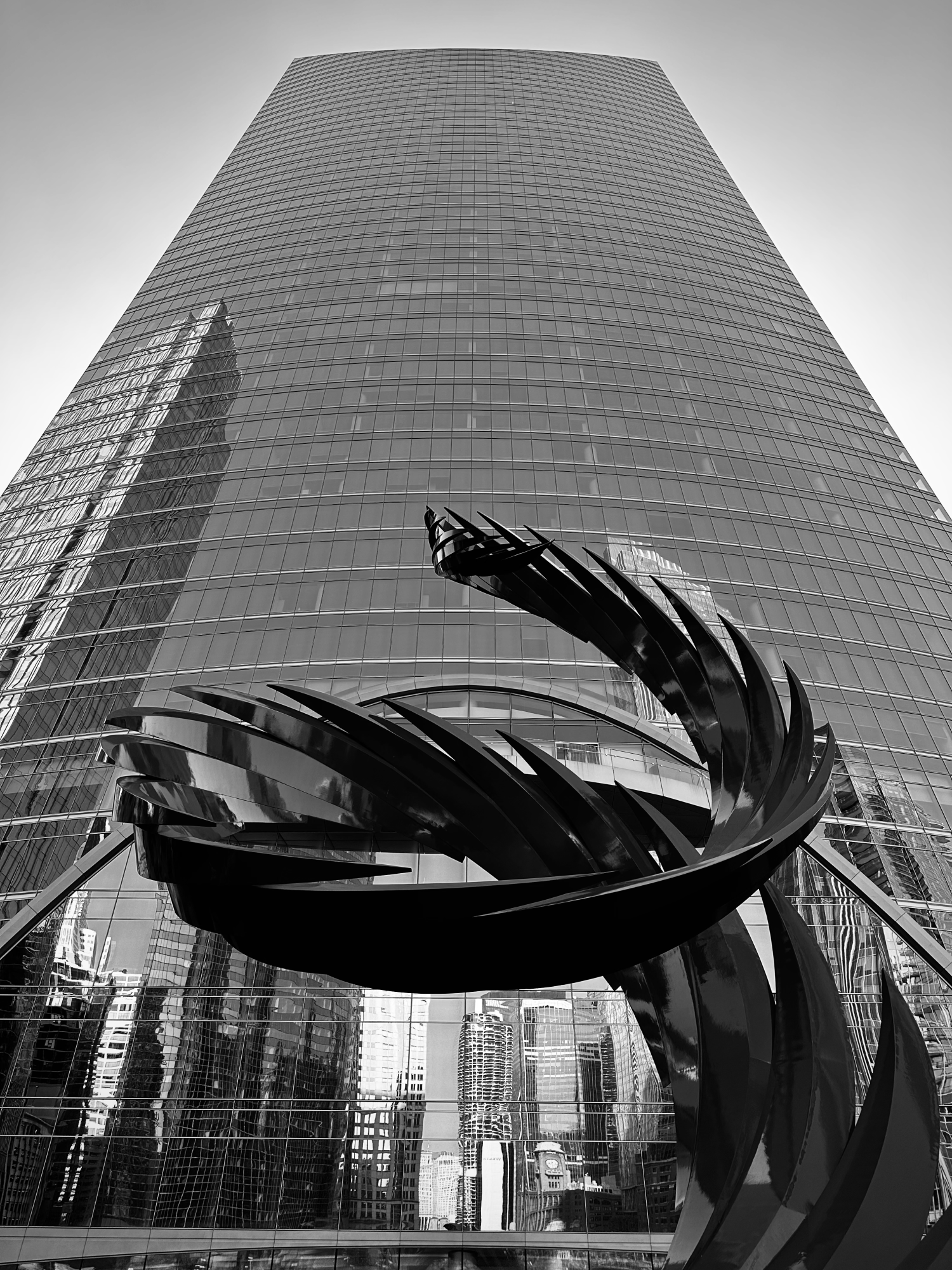 Reflecting River Point’s mirrored architectural arch, the sculpture’s graceful circular red form creates a stunning focal point for the plaza and a new iconic destination for the City of Chicago.