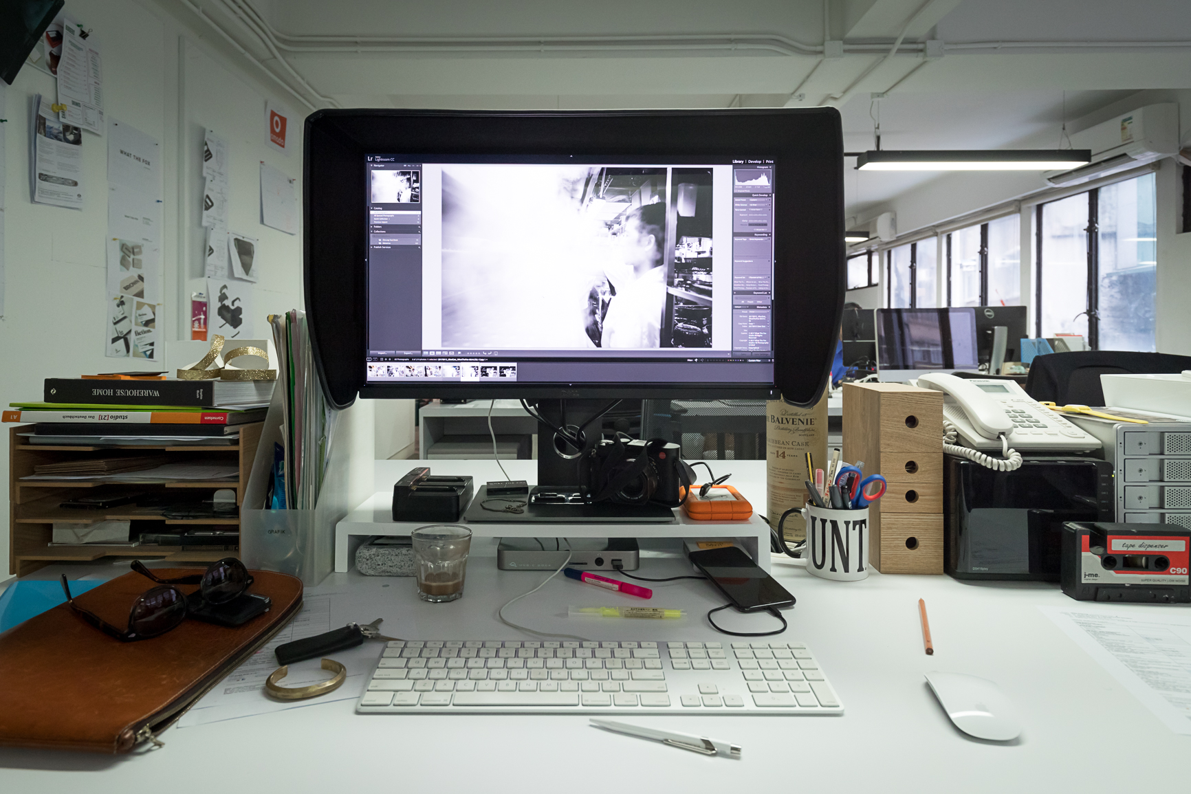What you guys can't see is that there are two large floor to ceiling cork board panels to the left of the top image filled with clippings, cutouts and printouts which we use as a mood board for everything we find inspiring, client proposals and other random images.