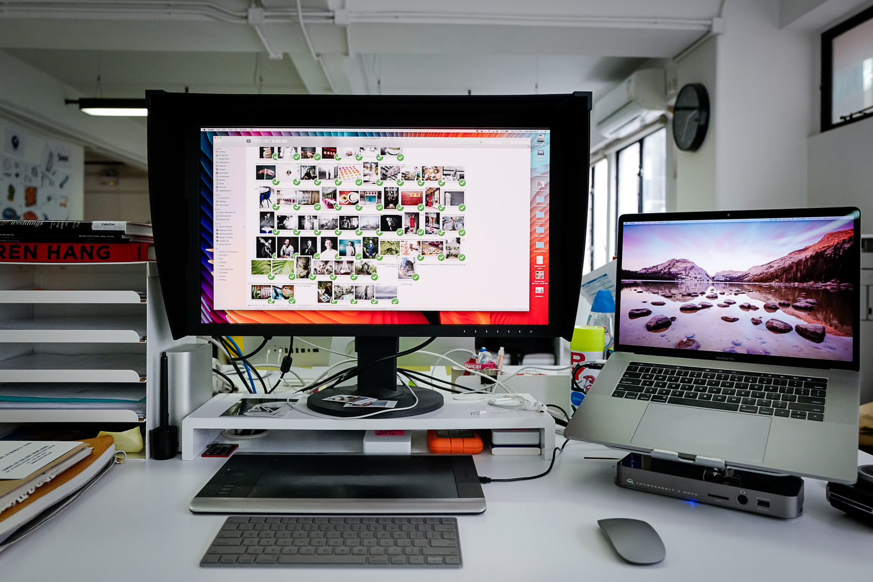 I’m always curious how other photographers set up their own workflow so this is a long post to share with anyone who might be interested. I’m going to focus on two of our computers here at the studio. The first image is of my setup where I do all the importing, processing and proofing and production work on a 2010 cMP, details in my sig.