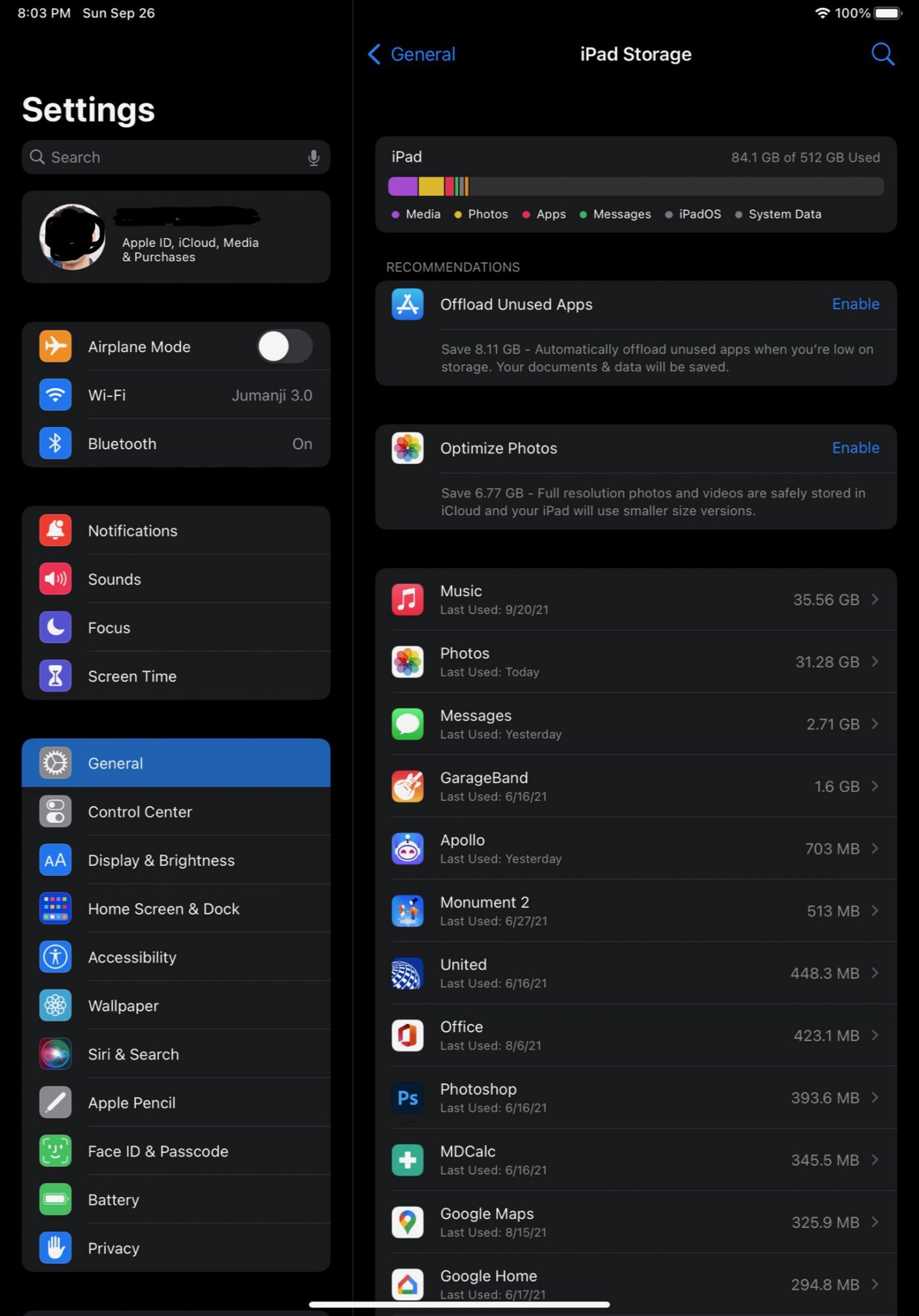 And we can see that Photo usage is still 2.2gb. However if you look at the iCloud Photo suggestion it now says 513.9mb if I enable it and upload those photos to iCloud.