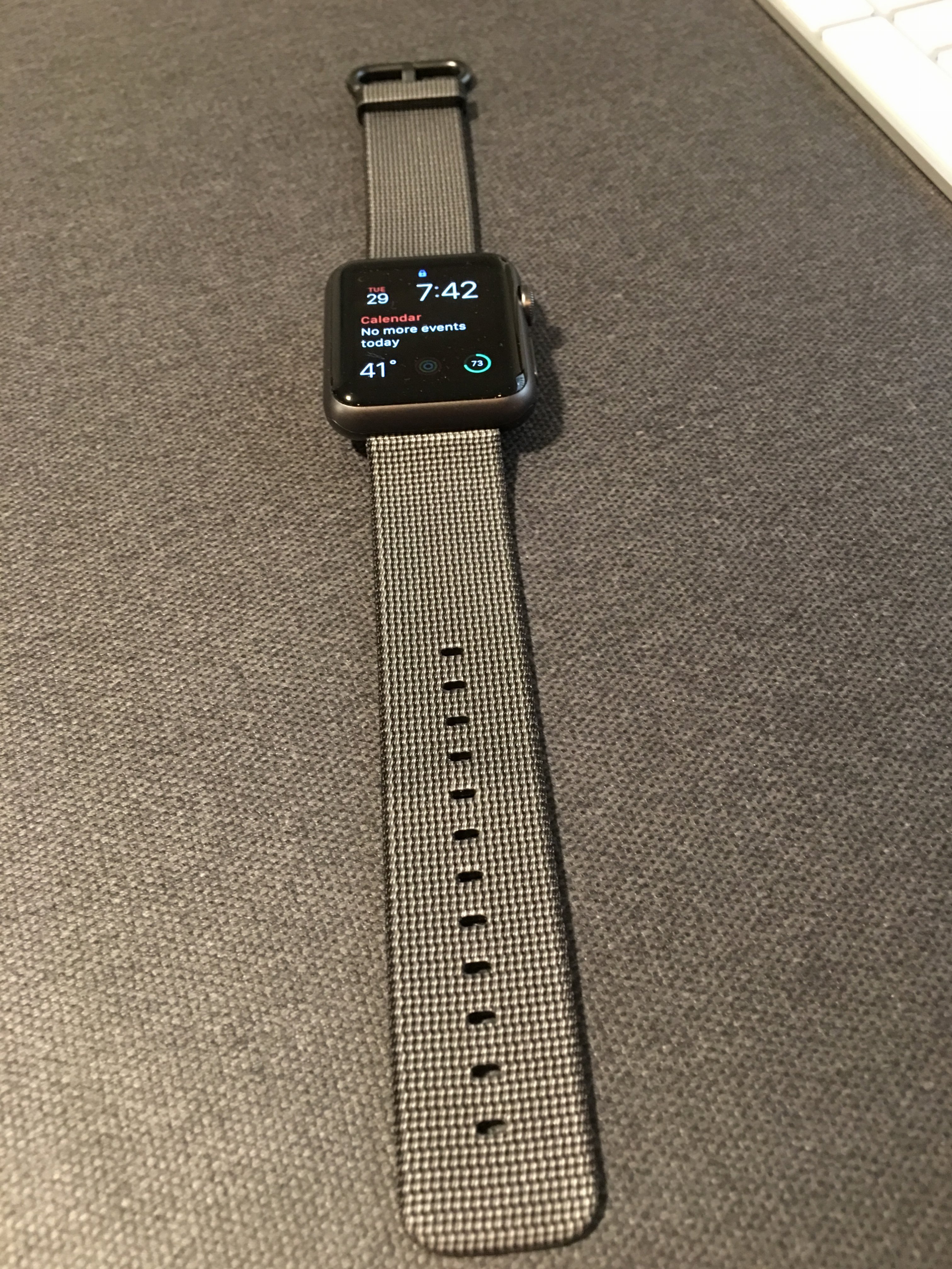 I managed to snag the two bands I wanted most, the black milanese and nylon bands today. They didn't have the yellow and royal blue sport bands I wanted too though. Gotta check back another time. Here's some photos of it with my stainless steel black Apple Watch.