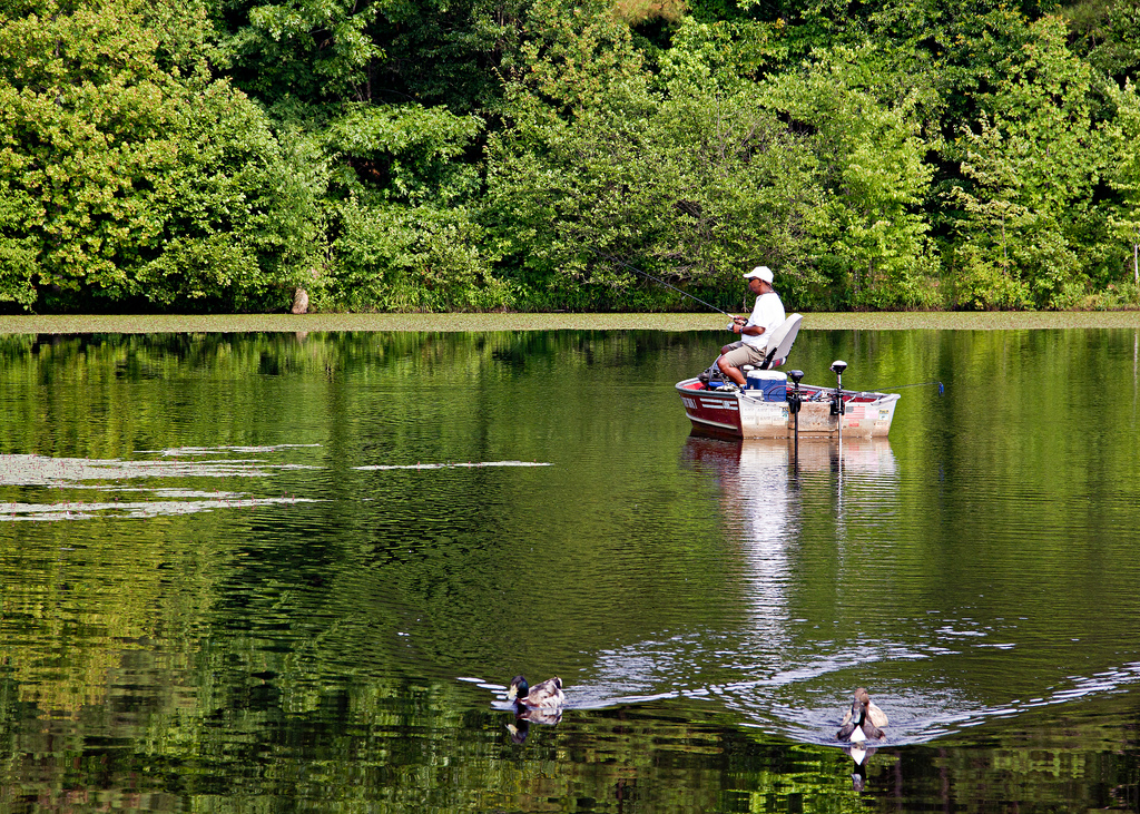 This guy was fishing out on the lake at Tribble Mill Park where the Miles-4-Smiles 5k was held.