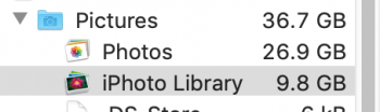 So I wanted to free up some space on my machine and noticed the majority is being taken up by Photos. Now I pay the 79p plan with Apple for 50gb iCloud storage space however my mac is taking up a lot of space and I seem to have a "photos" section which is taking up 27gb then an iPhoto library which is around 9gb.
