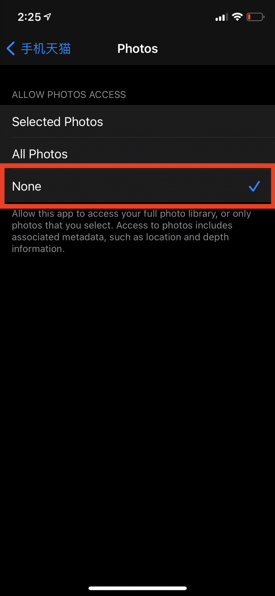I am using an iPhone X with iOS 14.4. Regardless of how I set my photo privacy settings for the app "Tmall" (by Alibaba) is able to view my photos - specifically when I try to use the messaging function in the app. I have tried restarting my phone and reinstalling the app to no avail Is anyone else experiencing this?