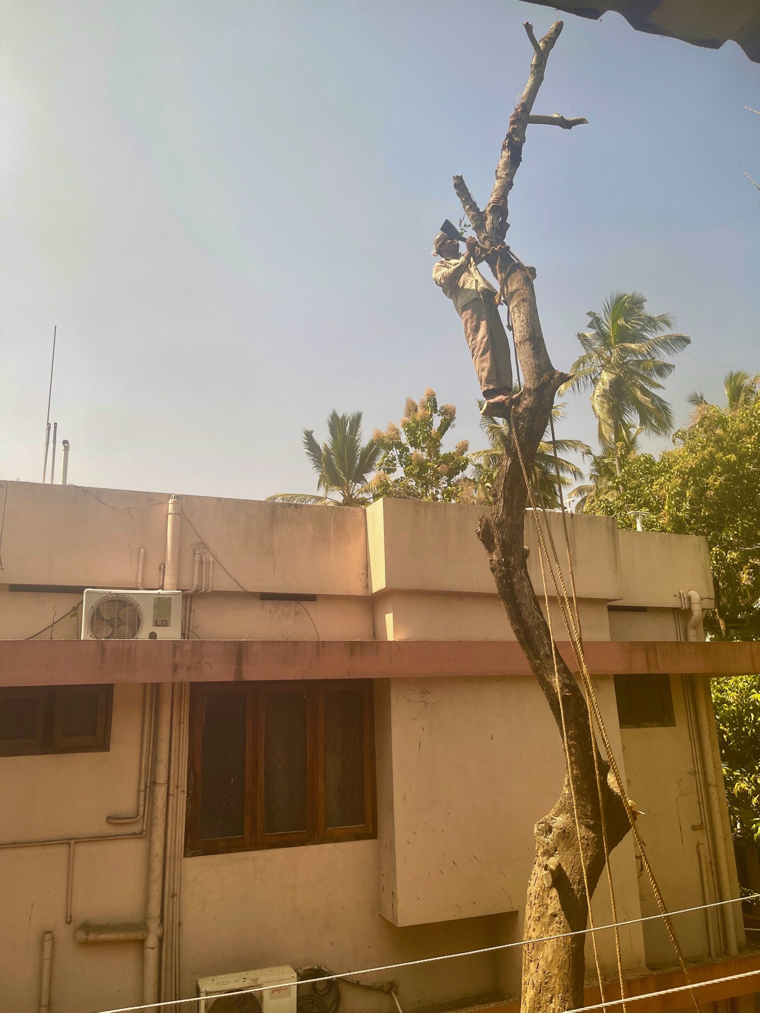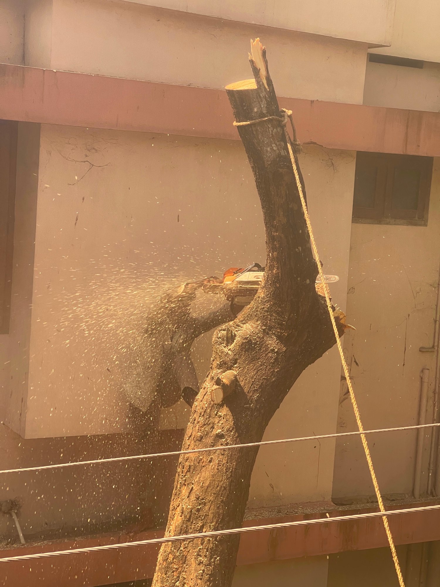 Had a difficult time getting him. Thought he would bring the whole tree down before I could capture him. 😁I didn’t see the person in the last photo at first so I thought the chainsaw was going by itself!![]()