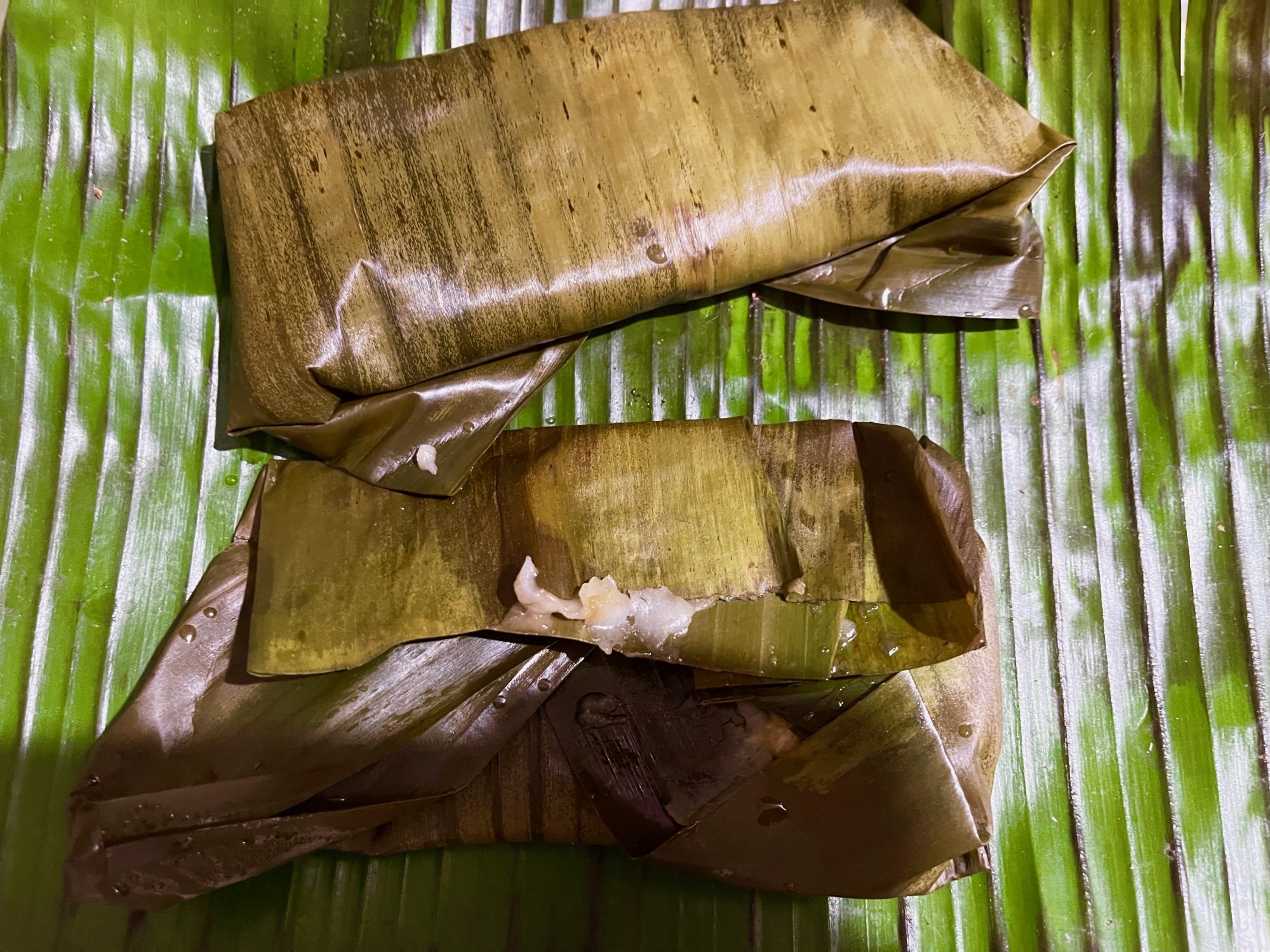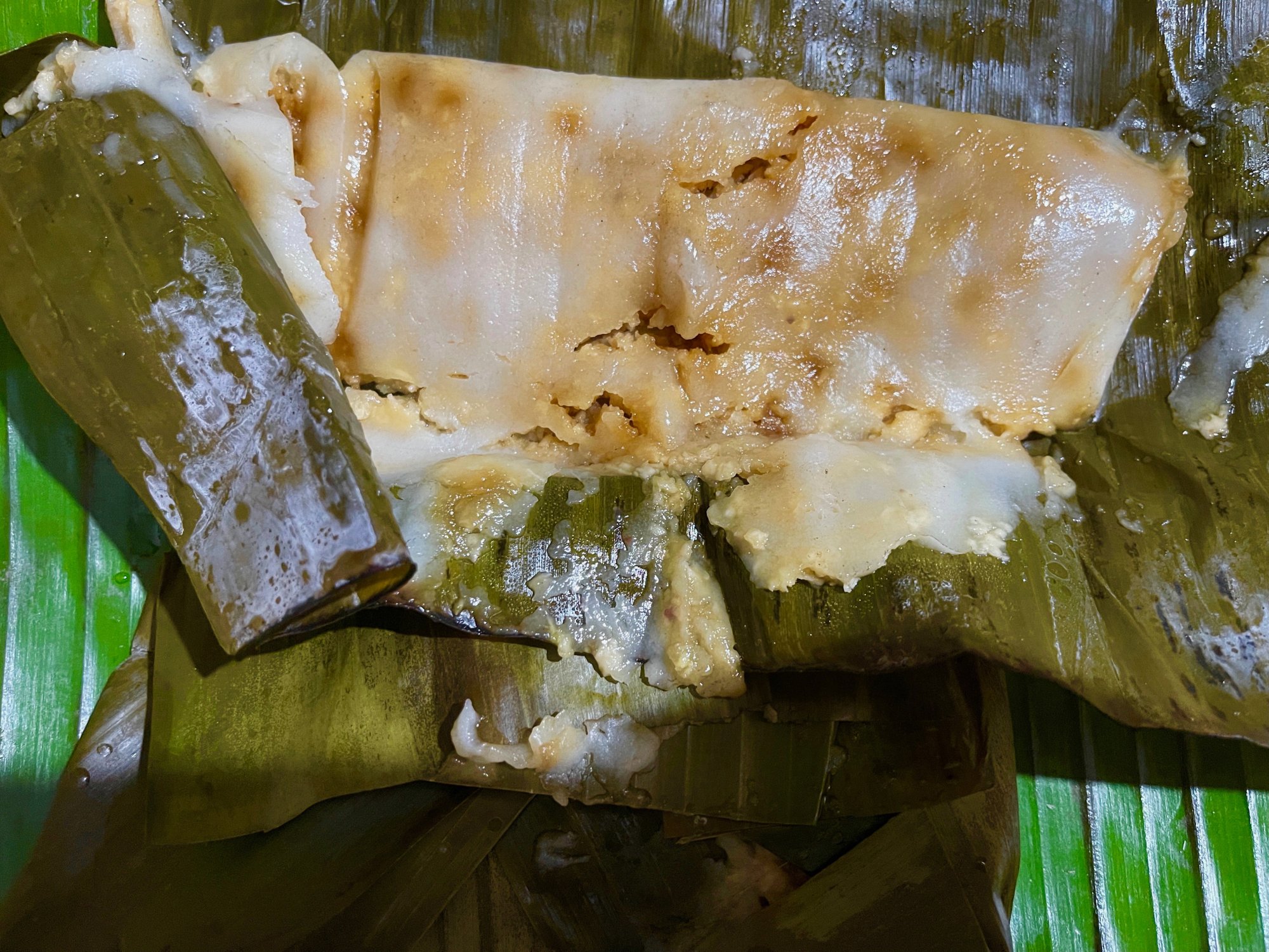 Steamed rice - banana leaf pancake