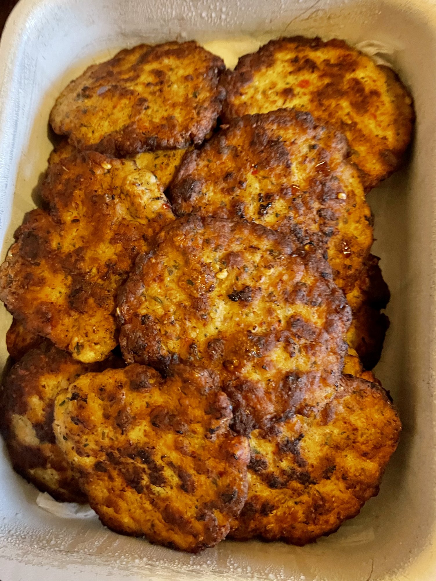 Homemade chicken burgers, ground chicken breast with herbs and spices 😉What are we looking at here?