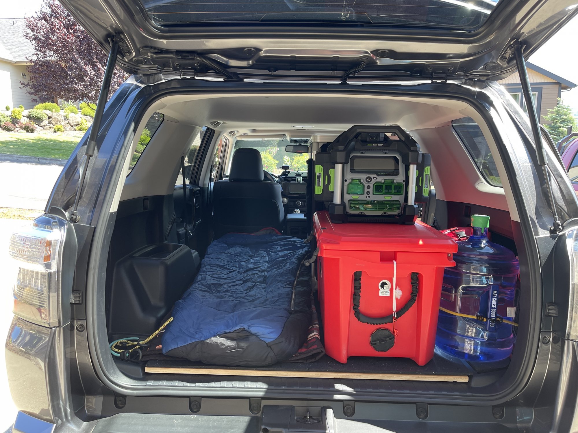 Enjoy your trip and post some pictures when you returnHeading out for 4 days of overland vehicle camping in the mountains. Removed the back seats and built a platform.