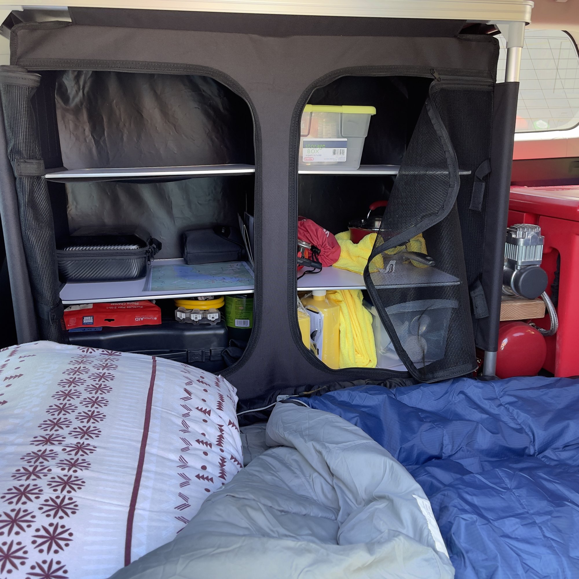 You are loaded. Wow! a nice getaway from the busy worldHeading out for 4 days of overland vehicle camping in the mountains. Removed the back seats and built a platform.