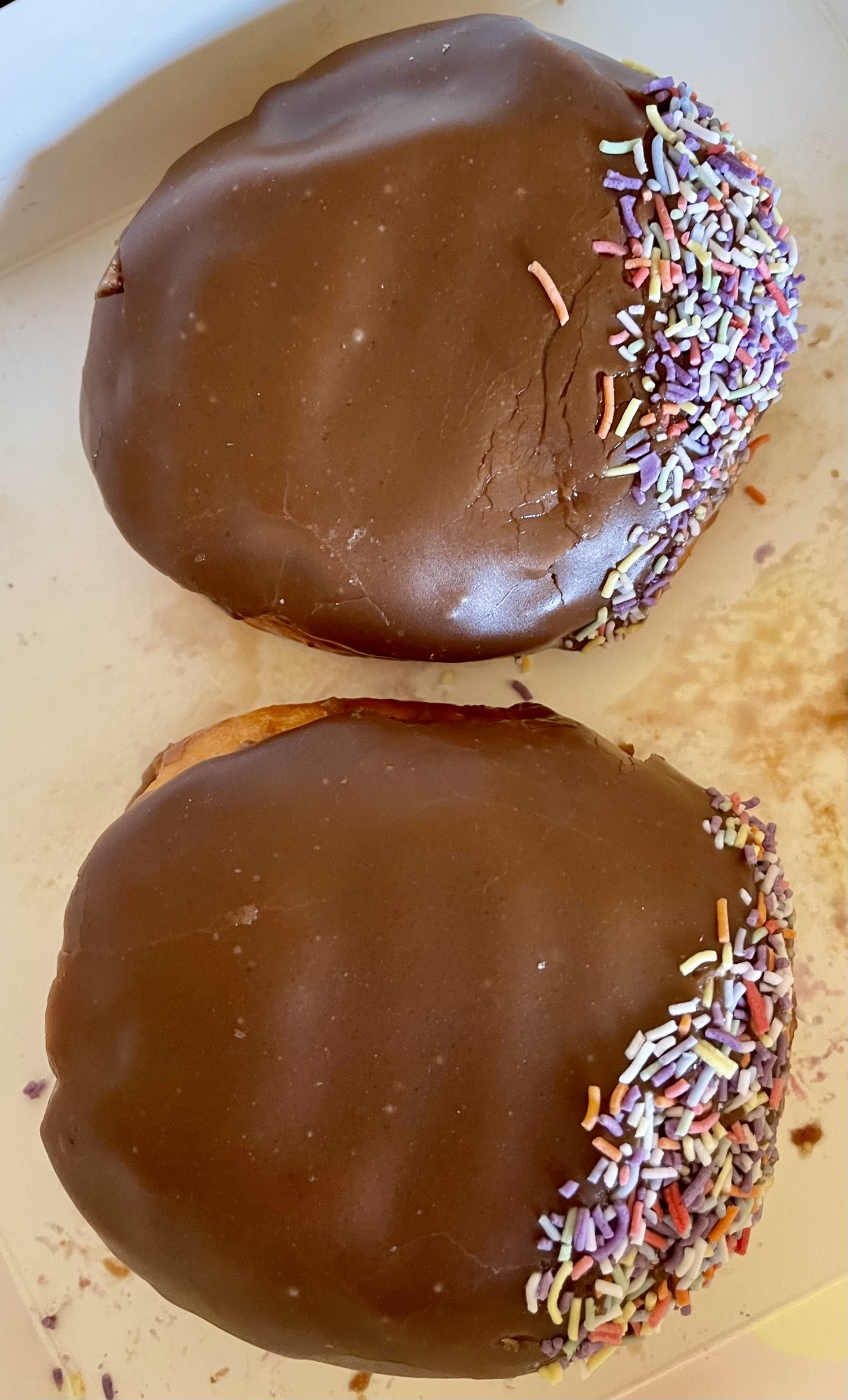 OMG. Custard-filled chocolate donuts with sprinkles?? 😛